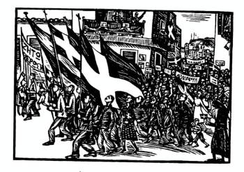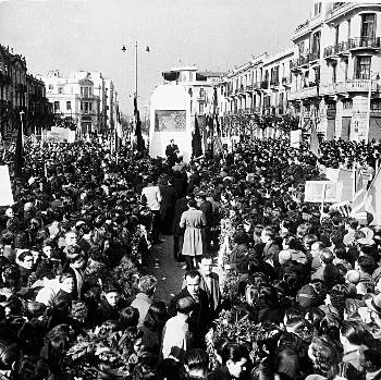 (…) το πένθιμο εμβατήριο αντηχεί από χιλιάδες στόματα που υπόσχονται πίστη στον αγώνα, το τελικό τσάκισμα του Φασισμού και τη Λαοκρατία (…)».