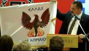 Ο υποφυρερίσκος της Χρυσής Αυγής, ο Παπάς, με τη σημαία του…
