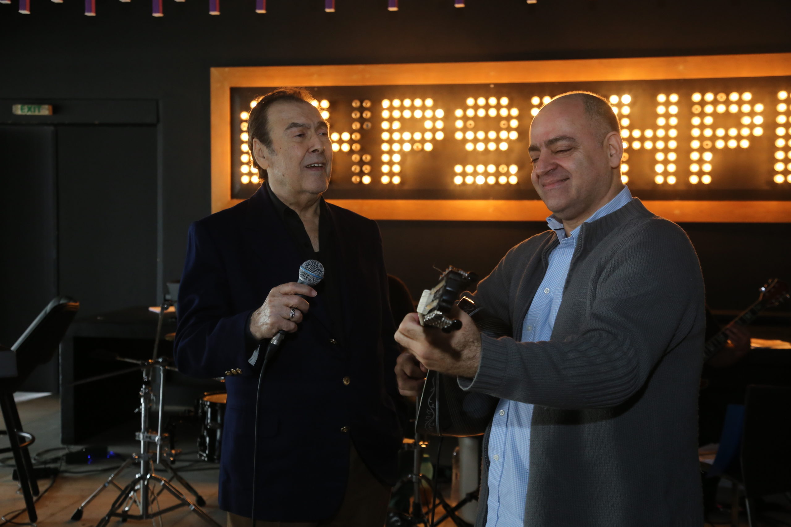 Έλαμπε από χαρά, έκανε πρόβες με τον έμπειρο και ικανό Νίκο Νομικό και τους υπόλοιπους «συνταξιδιώτες»του και στα διαλείμματα ήταν τρυφερός με την όμορφη και γλυκιά κόρη του,την Μαρία,που έχει συνέχεια την έγνοια του και τον φροντίζει με αγάπη… Ο φακός του enikos.gr απαθανάτισε ενσταντανέ με τους συνεργάτες του,αλλά και μια τρυφερή στιγμή με την κόρη του και το «ανεβάζει»για τα …μάτια σας μόνο! Όσο για το «μενού»;Το πάντα αγαπημένο «μενού»του σημαντικότατου βάρδου.