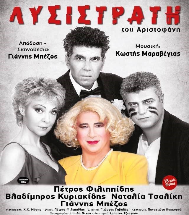 Παίζουν: Πέτρος Φιλιππίδης (Λυσιστράτη), Βλαδίμηρος Κυριακίδης (Κινησίας), Ναταλία Τσαλίκη (Μυρρίνη) και ο Γιάννης Μπέζος (Πρόβουλος).