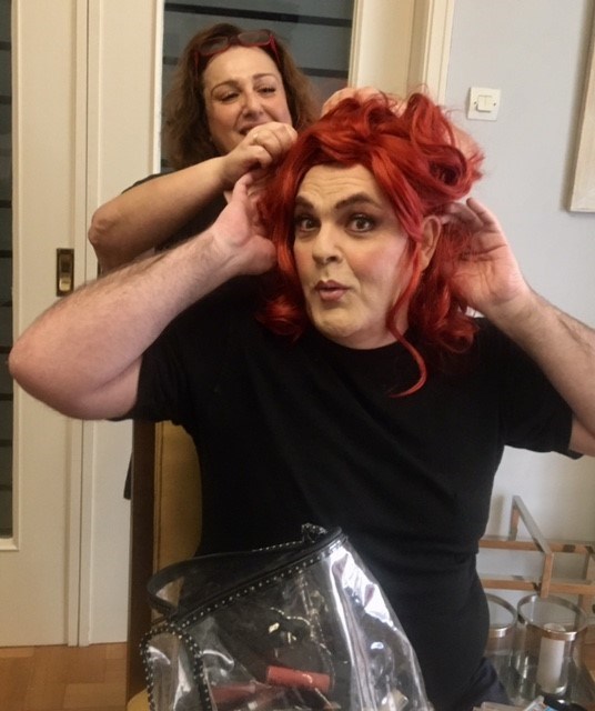 Πρώτος σου πρόδωσα πως ο πολυσχιδής Αλέξανδρος Ρήγας ετοίμαζε Εκκλησιάζουσες για το καλοκαίρι και πρώτος πως Πραξαγόρα θα παίξει ο εξαίρετος Αντώνης Λουδάρος! Δεν θες άλλη μια πρωτιά; Φυσικά και θες! Τρύπωσα στο σπίτι του όπου έγινε το πρώτο δοκιμαστικό για την… μεταμόρφωσή του από την ικανή μακιγιέζ Λίλα Μαρή και απαθανάτισα όλα τα στάδιά της! Γελάσαμε πολύ για μια ώρα με το χιούμορ και τον αυτοσαρκασμό του Αντώνη κι όταν πια φόρεσε και την κατακόκκινη περούκα που θα “φουντώνει”στη συνέχεια με πρόσθετο υλικό …κλάψαμε από το αποτέλεσμα! Δείτε κι εσείς, δεν είναι τέλειο; Κι αυτή είναι μόνο η αρχή αφού στην περούκα θα μπει και ένα αξεσουάρ- έκπληξη! Ο Λουδάρος είναι ενθουσιασμένος από το νέο του στοίχημα και δηλώνει χαρούμενος για την συνεργασία του με τον Ρήγα και την εξοχή διασκευή που έχει κάνει εκείνος! Πάρτε μια πρώτη γεύση από την κατά Λουδάρο Πραξαγόρα και θα επανέλθω με το ολοκληρωμένο λουκ του αλλά και την όλη φιλόδοξη δουλειά!