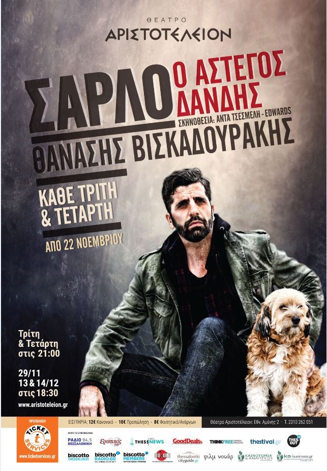 Ένα από τα πιο ενδιαφέροντα «στοιχήματα» της καριέρας του βάζει αυτόν τον καιρό ο ικανός Θανάσης Βισκαδουράκης παρουσιάζοντας στο θεατρόφιλο κοινό της Θεσσαλονίκης-αργότερα θα κατέβει και Αθήνα από ότι έμαθα από ασφαλή πηγή, αλλά δεν έχει καταλήξει ακόμα στο χώρο!- Ο έμπειρος ηθοποιός επιστρέφει στη συμπρωτεύουσα με μια αληθινή ανθρώπινη κωμικοτραγική ιστορία… Η παράσταση «Σαρλό, ο άστεγος δανδής», προχωράει ένα βήμα παραπέρα, και ανακαλύπτει την αλήθεια.