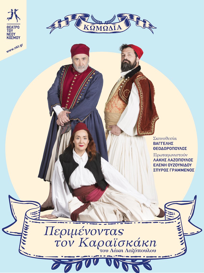 Μια μάζωξη στον Κάτω Κόσμο με κεντρικό πρόσωπο τον απόντα Καραϊσκάκη είναι το θέμα της κωμωδίας “Περιμένοντας τον Καραϊσκάκη” σε πρωτότυπο κείμενο του Λάκη Λαζόπουλου με τον ίδιο, τη Λένα Ουζουνίδου και τον Σπύρο Γραμμένο να τους σκηνοθετεί ο Βαγγέλης Θεοδωρόπουλος και να περιοδεύουν σε όλη την Ελλάδα!