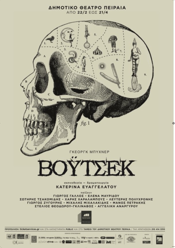 Με πολύ μεγάλο ενδιαφέρον περιμένουμε τον υποσχόμενο “Βόυτσεκ”που ετοιμάζει πυρετωδώς η άξια Κατερίνα Ευαγγελάτου για το Δημοτικό Θέατρο Πειραιά! Το enikos.gr εξασφάλισε την πρωτότυπη, εξαιρετικής αισθητικής αφίσα της παραστασης στην οποία πρωταγωνιστούν οι εξαίρετοι Γιώργος Γάλλος-Έλενα Μαυρίδου και την ανεβάζει ενω πλησιάζει η πρεμιέρα(δες 22.2). Λάβετε θέσεις γιατί θα …σκάσουν από οτι μαθαίνω απανωτά sold out για τον Μπύχνερ της Ευαγγελάτου, που ήδη πλουτίζει θεατρικά τη χρονιά με το έξοχο ανέβασμα της Κωμωδίας των παρεξηγήσεων στης Βασιλάκου! Ο σχεδιασμός της αφίσας έγινε από τον Σάκη Στριτσίδη.