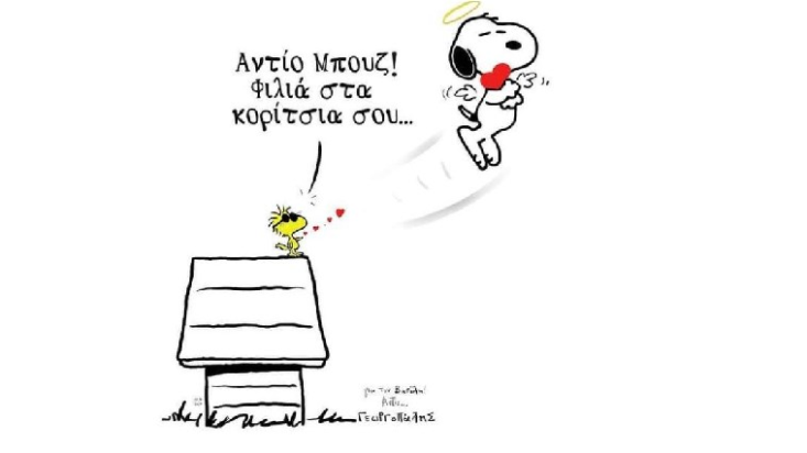 Με ένα συγκλονιστικό σκίτσο, εκφράζει τη θλίψη του για την απώλεια του αρχισυντάκτη του ένθετου Reallife της Realnews, υπεύθυνου της στήλης “Απαγορευμένη Ατζέντα του ΜΠΟΥΖ” στο enikos.gr και παραγωγού στον Realfm 97,8. Το σκίτσο του Δημήτρη Γεωργοπάλη απεικονίζει τον Σνούπι να πετά σαν αγγελάκι, και τον Γούντστοκ, το μικρό κίτρινο πουλί που ήταν βοηθός και φίλος του διάσημου σκύλου-καρτούν, να του λέει “Αντίο Μπουζ! Φιλιά στα κορίτσια σου…”