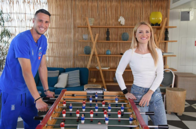 Αναφέρεται ακόμα στις δύο νίκες που έχει πανηγυρίσει με τη Σεβίλλη κόντρα στην Μπαρτσελόνα, τη ζωή του στην Ισπανία και αποδέχεται το challenge της Λίλας Κουντουριώτη «φτιάχνοντας» τον ιδανικό παίκτη της Εθνικής Ομάδας.