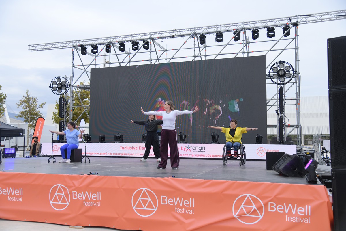 Στις εμπειρίες του ΟΠΑΠ είχαν θέση όλοι. Με πρωτοβουλία του Χρυσού Χορηγού του BeWell festival, πραγματοποιήθηκε μια συμπεριληπτική εμπειρία χορού από την ομάδα “ΕΞΙΣ”. Η χοροθεραπεύτρια Άννα Βεκιάρη και η ομάδα της μοιράστηκαν τη χαρά της κίνησης, σε ένα μοναδικό μάθημα σύγχρονου χορού και αυτοσχεδιασμού, στο οποίο συμμετείχαν άτομα με και χωρίς αναπηρία.