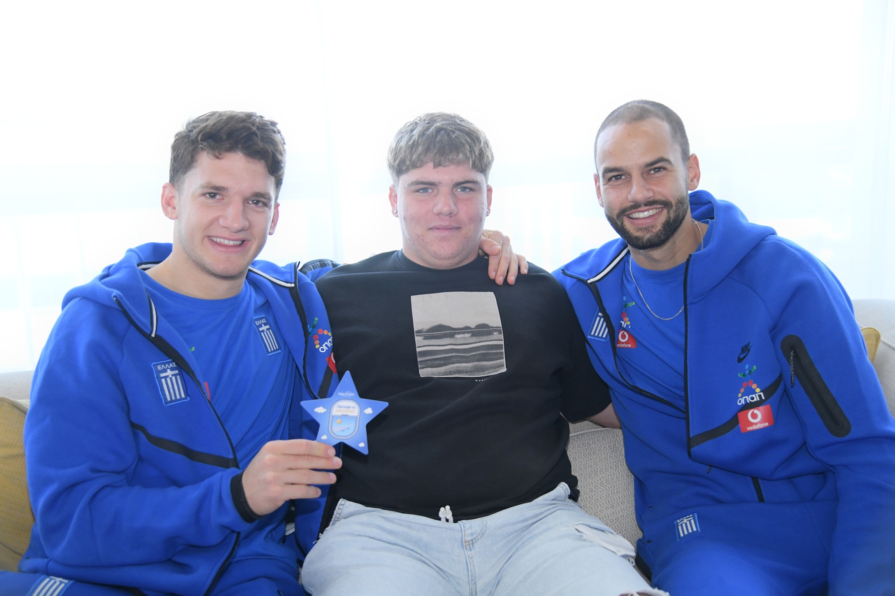 Οι διεθνείς γνωρίστηκαν με τα παιδιά, έβγαλαν φωτογραφίες μαζί τους και απάντησαν σε όλες τους τις ερωτήσεις, ενώ τους χάρισαν, ως αναμνηστικά δώρα, μία εμφάνιση της Εθνικής και ποδοσφαιρικές μπάλες. Η έκπληξη, ωστόσο, δεν σταμάτησε εκεί αφού στη συνέχεια γνώρισαν ακόμη περισσότερους παίκτες της ομάδας, παίρνοντας αυτόγραφα και βγάζοντας φωτογραφίες που θα τους θυμίζουν για πάντα αυτή τη μοναδική ημέρα που έζησαν.