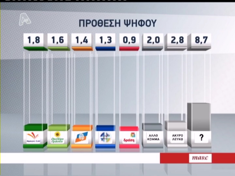 Κατάρρευση παρουσιάζουν στην εκτίμηση ψήφου τα ποσοστά των μικρών κομμάτων.
