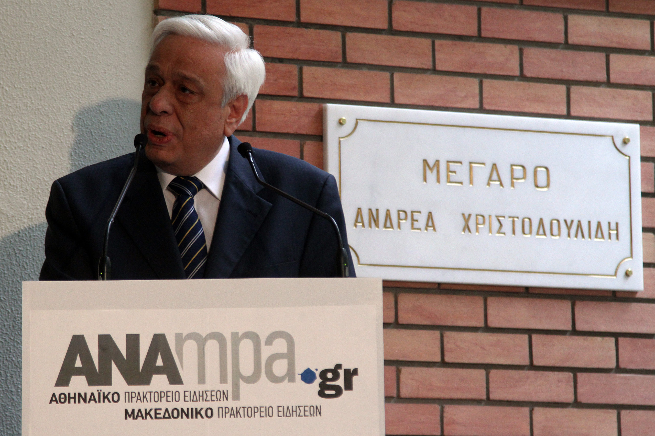 Μήνυμα συναίνεσης και ενότητας «σε αυτές τις κρίσιμες στιγμές για τον τόπο» έστειλε ο Πρόεδρος της Δημοκρατίας, Προκόπης Παυλόπουλος κατά τον χαιρετισμό του στην εκδήλωση που πραγματοποιήθηκε στο Αθηναϊκό Πρακτορείο, στη μνήμη του Ανδρέα Χριστοδουλίδη, στο πλαίσιο της οποίας το κτίριο του Πρακτορείου μετονομάστηκε σε Μέγαρο Ανδρέα Χριστοδουλίδη.