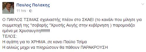 Αυτή τη φορά, στο στόχαστρο του Παύλου Πολάκη, βρέθηκε ο δημοσιογράφος, Παύλος Τσίμας. Δείτε τι έγραψε ο αναπληρωτής υπουργός, στο facebook: