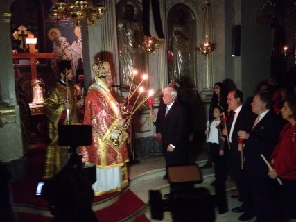 Από τον ιερό μητροπολιτικό ναό της Υπαπαντής του Σωτήρος, ο πρόεδρος της Δημοκρατίας ευχήθηκε, «το ανέσπερο φως της Ανάστασης και ο συμβολισμός του Πάσχα να φανερώσουν: