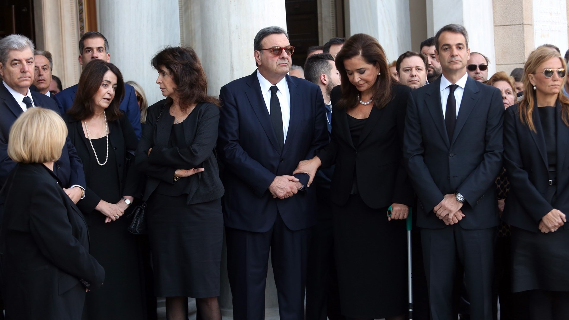 Εμφανώς συγκινημένη και καταβεβλημένη έφτασε, πριν από τις 7 το πρωί, η Ντόρα Μπακογιάννη στηριζόμενη σε πατερίτσα και συνοδευόμενη από τον σύζυγό της Ισίδωρο Κούβελo. Μαζί της ήταν και η αδελφή της Αικατερίνη Μητσοτάκη. Λίγα λεπτά αργότερα έφτασαν τα παιδιά της Ντόρας Μπακογιάννη, Αλεξία και Κώστας Μπακογιάννης, και στη συνέχεια ο πρόεδρος της Νέας Δημοκρατίας Κυριάκος Μητσοτάκης με τη σύζυγό του Μαρέβα.