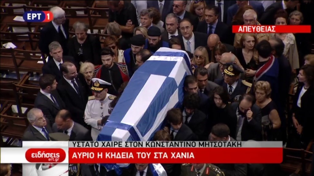 «Όπως πάντα ο Κωνσταντίνος Μητσοτάκης είναι αφέντης της μοίρας του και καπετάνιος της ψυχής του, ας είναι ελαφρύ το χώμα της κρητικής γης που θα τον υποδεχθεί. Καλό σου ταξίδι», είπε, καταλήγοντας, στον επικήδειο του ο πρόεδρος της ΝΔ, Κυριάκος Μητσοτάκης.