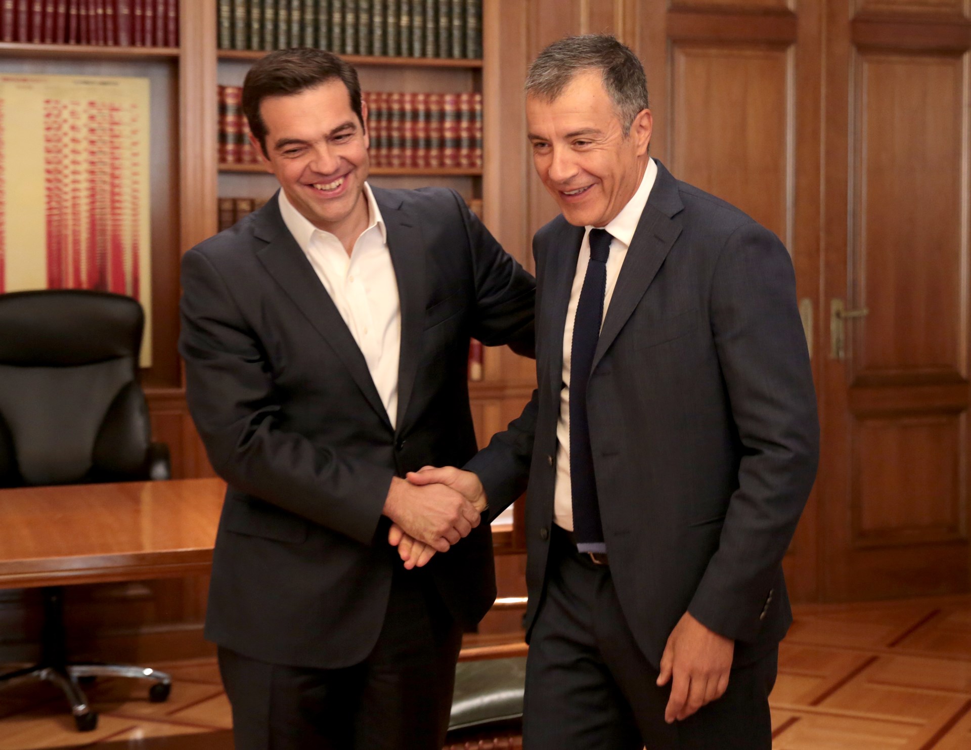 Τη στήριξή τους στον Πρόεδρο της Κύπρου Νίκο Αναστασιάδη και στις προσπάθειές του για εξεύρεση λύσης στο Κυπριακό εξέφρασαν ο πρωθυπουργός Αλέξης Τσίπρας και ο επικεφαλής του Ποταμιού Σταύρος Θεοδωράκης, κατά τη συνάντησή τους στο Μέγαρο Μαξίμου, στο πλαίσιο των επαφών του πρωθυπουργού με τους πολιτικούς αρχηγούς προκειμένου να τους ενημερώσει σχετικά με την απόφαση του Eurogroup και τις εξελίξεις στο Κυπριακό.Ο Αλέξης Τσίπρας τόνισε πως το ζήτημα της λύσης έχει περάσει εδώ και αρκετό καιρό στην απέναντι πλευρά, ενώ υπογράμμισε πως Ελλάδα και Κύπρος μπορούν να αξιοποιήσουν την ευρωπαϊκή τους θέση. Χρειάζεται επιμονή και υπομονή για τα βρεθεί λύση, προσέθεσε ο πρωθυπουργός.