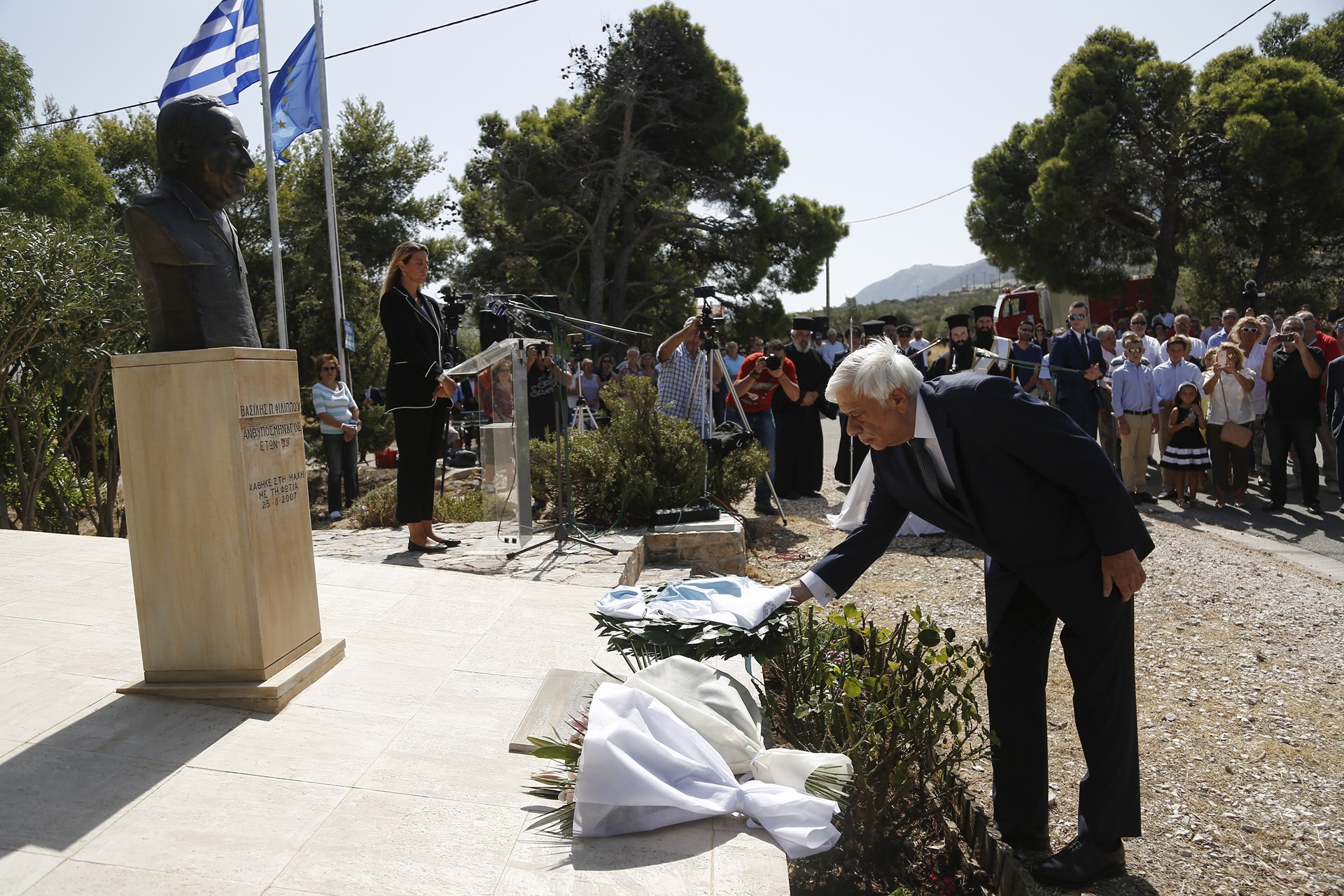 Εκδήλωση μνήμης και επιμνημόσυνη δέηση για τον αδικοχαμένο εθελοντή, ανθυποσμηναγό Βασίλη Φιλίππου, τελέστηκε σήμερα, παρουσία του Προέδρου της Δημοκρατίας Προκόπη Παυλόπουλου και χοροστατούντος του Μητροπολίτη Μεσογαίας και Λαυρεωτικής, Νικόλαου.