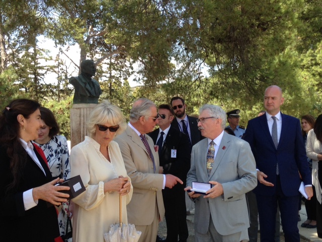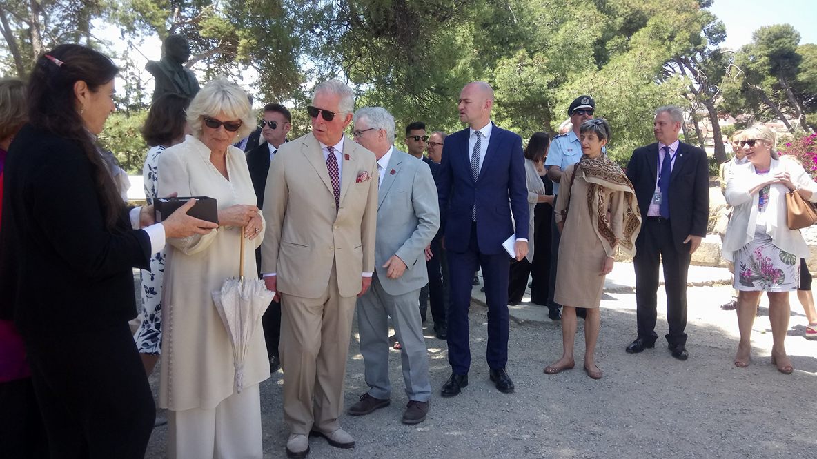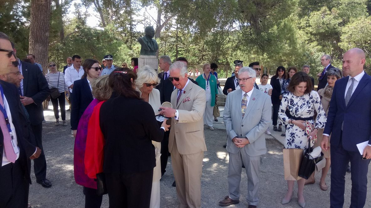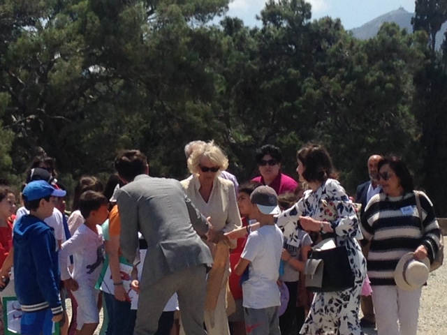 Μετά την περιήγηση, η δούκισσα της Κορνουάλης συνομίλησε με παιδιά δημοτικού που βρέθηκαν στο σημείο και δέχτηκε με ευχαρίστηση τις ζωγραφιές τους, ενώ ο Κάρολος συζητούσε με διάφορους τουρίστες.