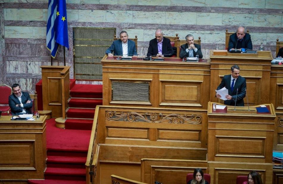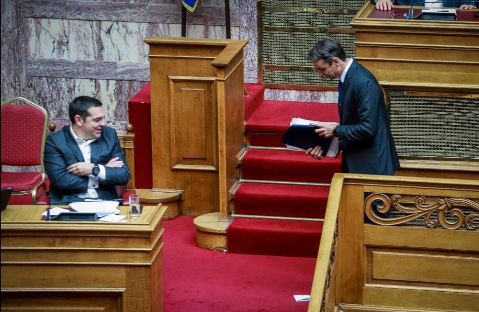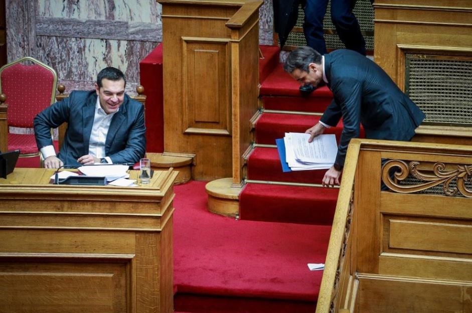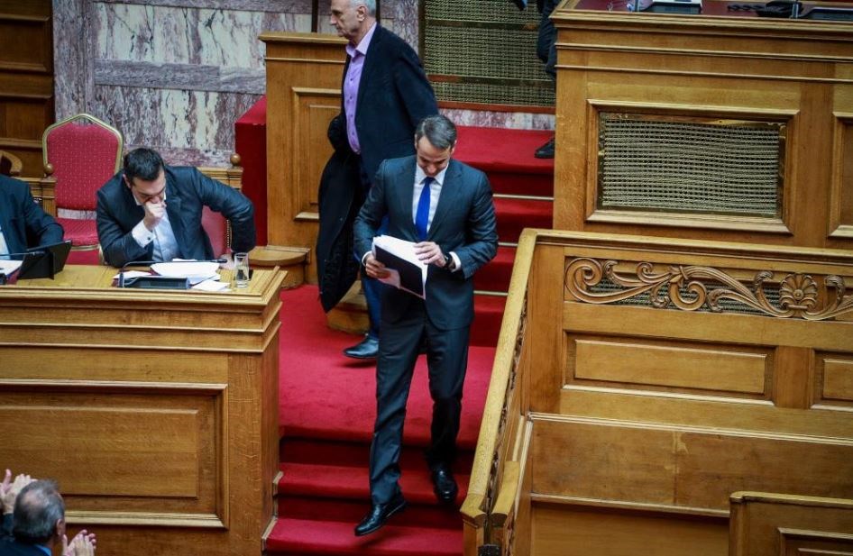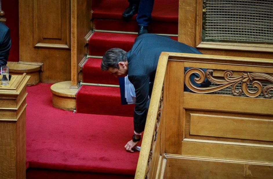 Αμέσως μετά την ολοκλήρωση της τοποθέτησής του στη Βουλή, ο Κυριάκος Μητσοτάκης κατευθυνόταν προς τα έδρανα της Νέας Δημοκρατίας, όταν ένα χαρτί από τις σημειώσεις του, του έπεσε κάτω.Κάτι που παρατήρησε ο πρωθυπουργός Αλέξης Τσίπρας και του το έδειξε. Ο κ. Μητσοτάκης πήρε το χαρτί που του έπεσε και κατευθύνθηκε τελικά στο έδρανό του, χωρίς να ακουστεί τι ειπώθηκε μεταξύ των δύο ανδρών.