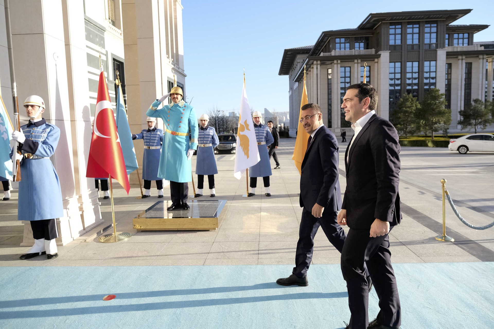 Αμέσως μετά την άφιξή του, ο Έλληνας Πρωθυπουργός μετέβη στο Προεδρικό Μέγαρο όπου συναντήθηκε με τον αντιπρόεδρο της Τουρκικής Δημοκρατίας, Φουάτ Οκτάι.