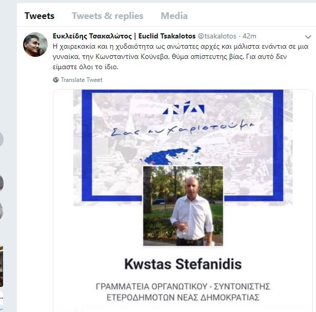 Σάλος από την ανάρτηση στελέχους της ΝΔ για την Κούνεβα – Το οργισμένο tweet του Τσακαλώτου