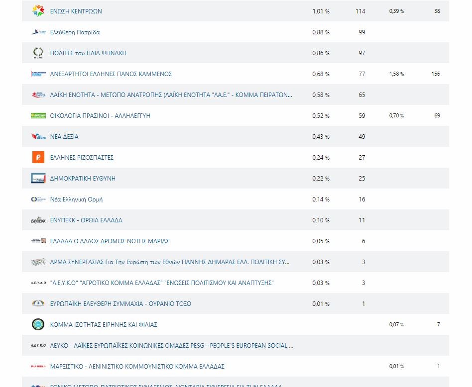 Ολοκληρώθηκε η καταμέτρηση των ψήφων στα εκλογικά τμήματα του εξωτερικού. Η ΝΔ συγκέντρωσε ποσοστό 33,89%, έναντι 15,28% του δεύτερου ΣΥΡΙΖΑ. Τρίτο κόμμα ήταν το ΚΚΕ με 14% και ακολούθησαν το Κίνημα Αλλαγής με 8,58%, το Ποτάμι με 4,95%, η Χρυσή Αυγή με 3,58% και η ΜέΡΑ 25 του Γιάνη Βαρουφάκη με 3,25%. Η Ελληνική Λύση του Κυριάκου Βελόπουλου συγκέντρωσε μόλις 1,70%. Η διαφορά ανάμεσα σε ΝΔ και ΣΥΡΙΖΑ ήταν 18,61%. Να σημειωθεί ότι η συμμετοχή έφτασε στο 79,18%.