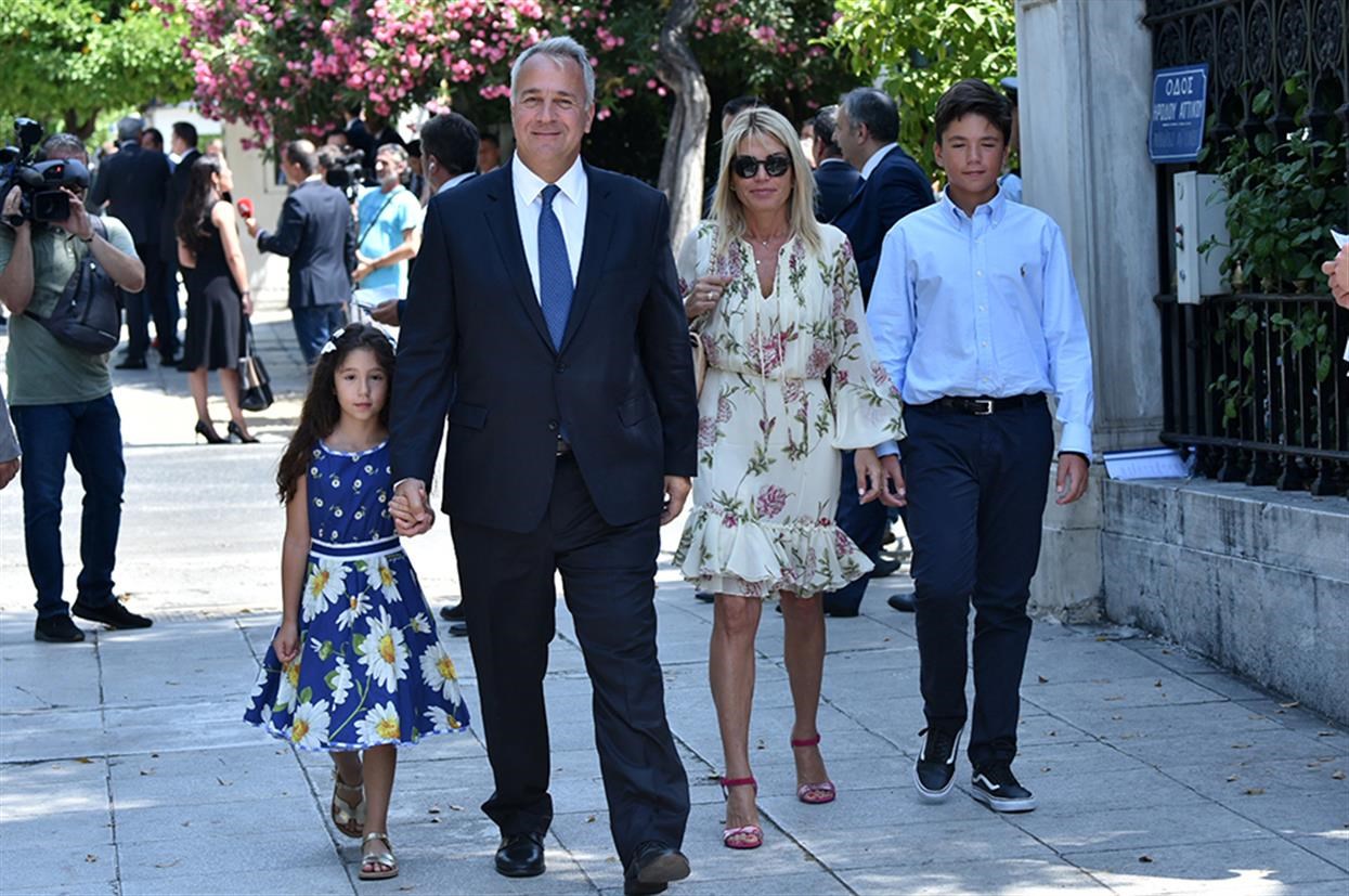 Και η σύζυγος του υφυπουργού Κοινωνικής Ασφάλισης, Νότη Μηταράκη, επέλεξε ένα λευκό φόρεμα με εντυπωσιακή λαιμόκοψη.