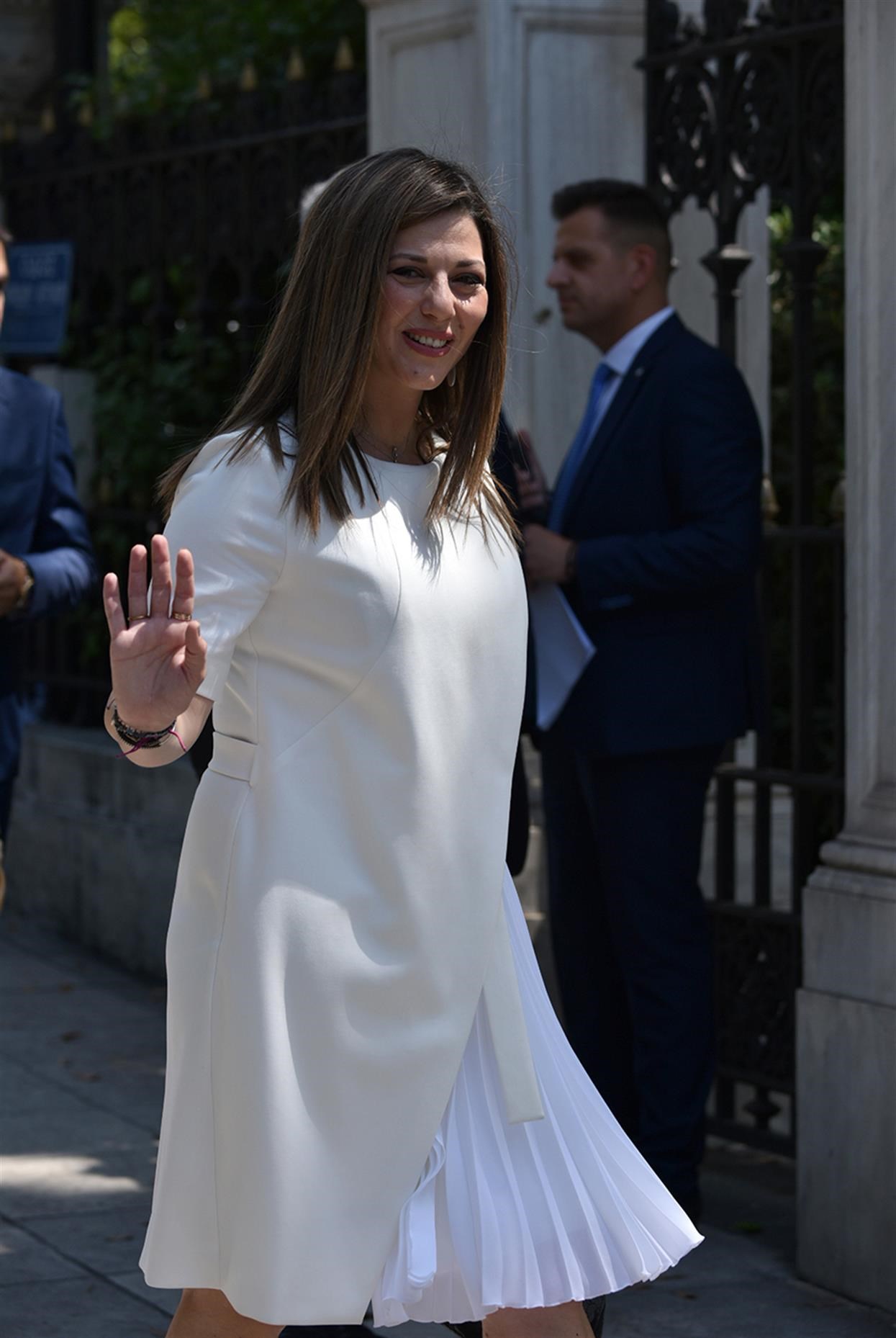 Το λευκό ψήφισε και η νέα υφυπουργός Παιδείας, Σοφία Ζαχαράκη, η οποία επέλεξε ένα κομψό φόρεμα.