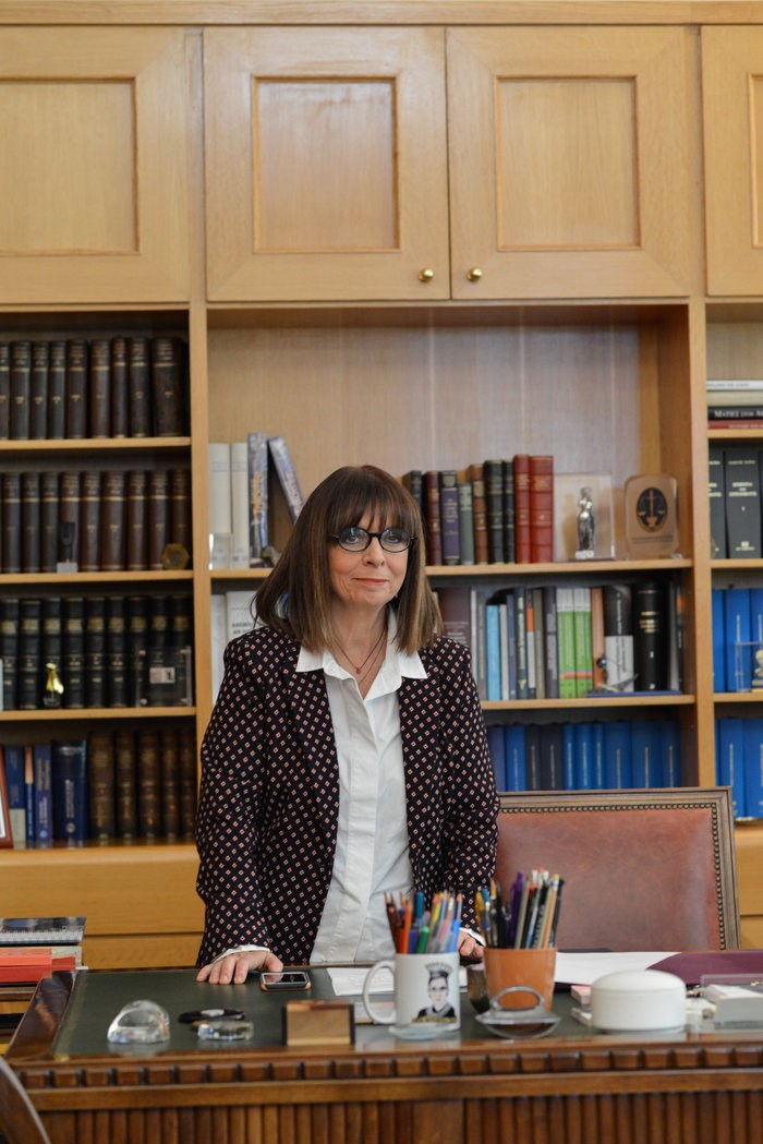 Μαζί του οι φωτογράφοι είχαν την ευκαιρία να τρυπώσουν στο γραφείο της Προέδρου της Δημοκρατίας και οι κάμερες στράφηκαν στον χώρο της κυρίας Σακελλαροπούλου με τα αντικείμενα που βρίσκονταν πάνω στο ξύλινο έπιπλο να κερδίζουν τις εντυπώσεις.