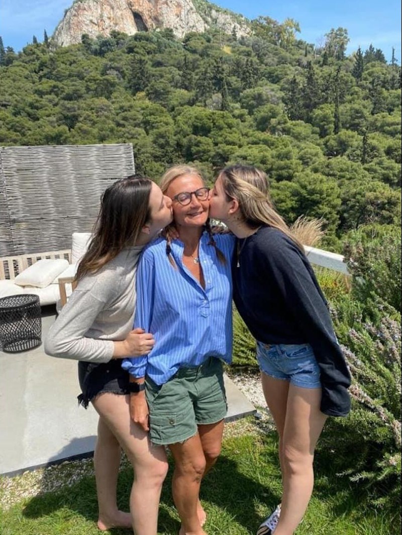 Σε μια από τις φωτογραφίες η Μαρέβα Μητσοτάκη τσουγκρίζει κόκκινο αυγό με τον γιο της, ενώ σε άλλη οι δύο κόρες του Πρωθυπουργού, Σοφία και Δάφνη φιλούν τη μητέρα τους.