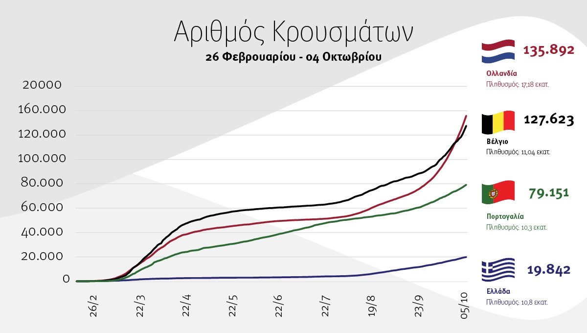 Δείτε τα διαγράμματα που παρέθεσε ο Πέτσας και δείχνουν την πορεία της πανδημίας στην Ελλάδα, σε σύγκριση με το Βέλγιο, την Πορτογαλία και την Ολλανδία