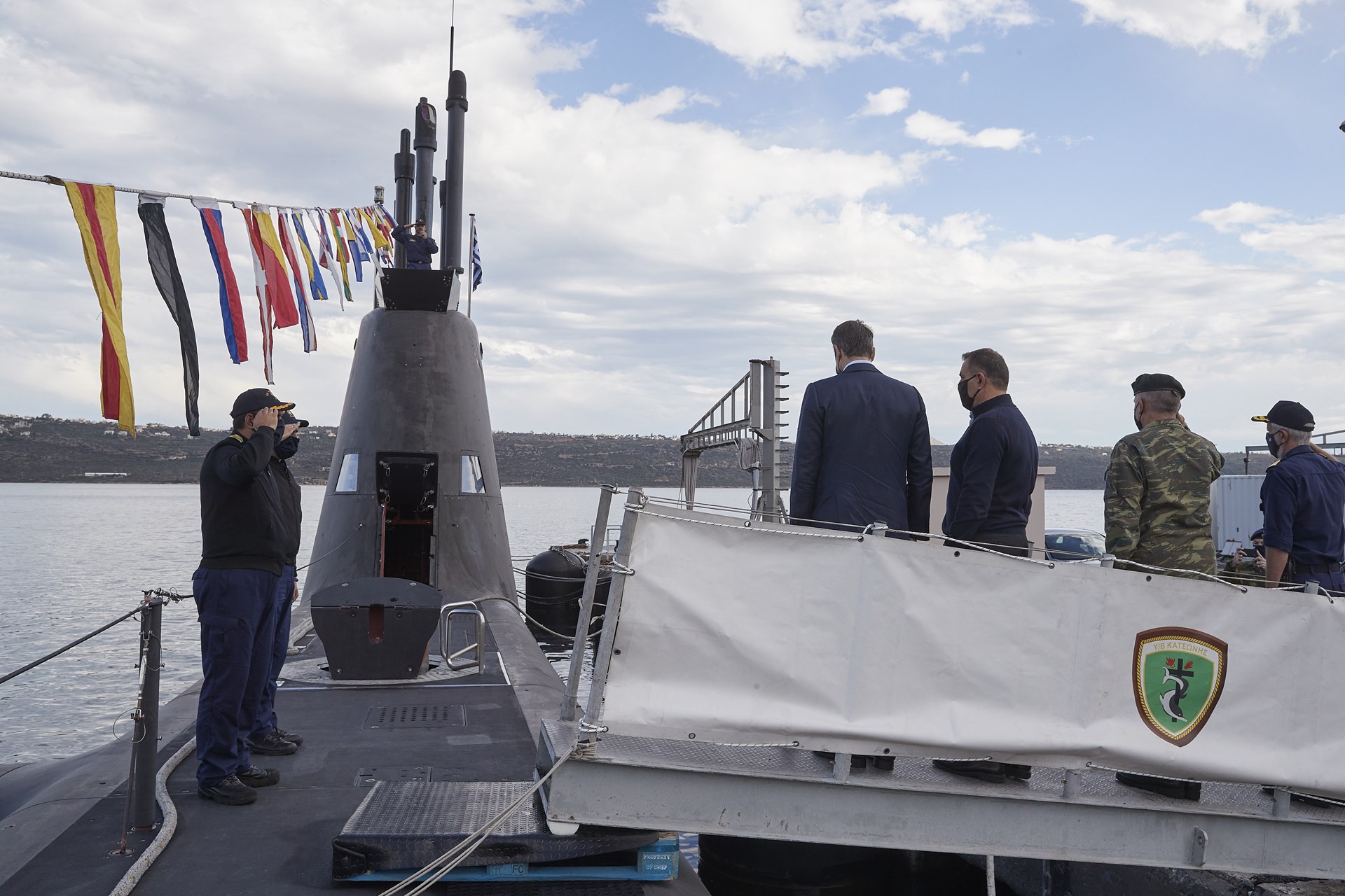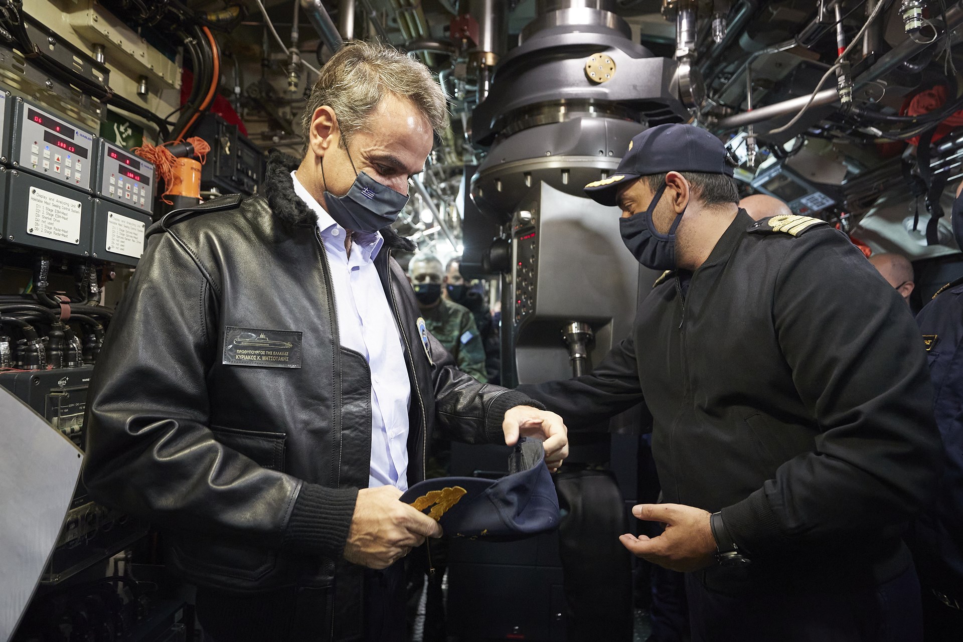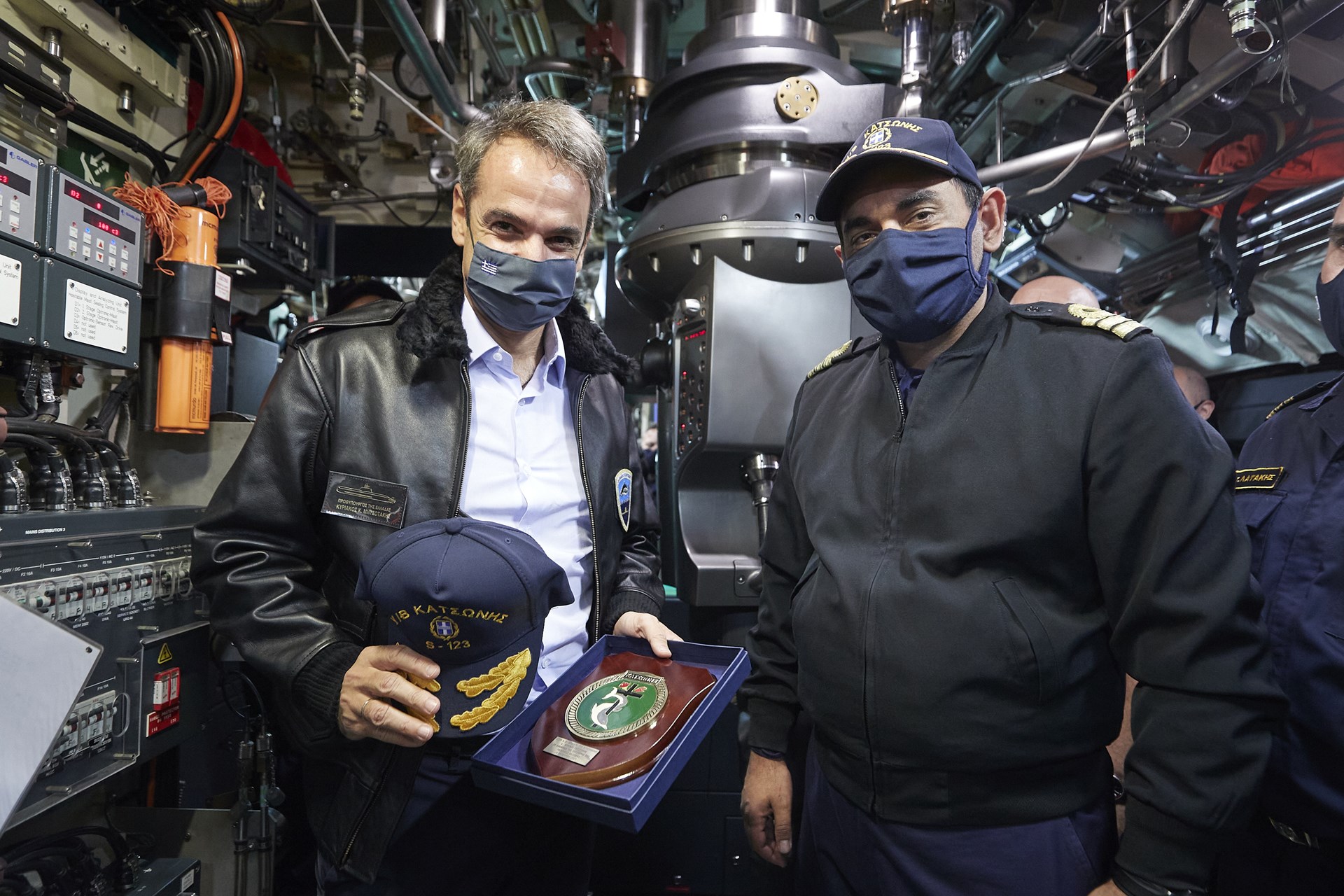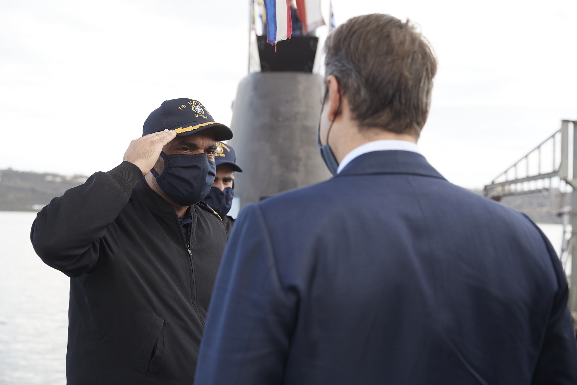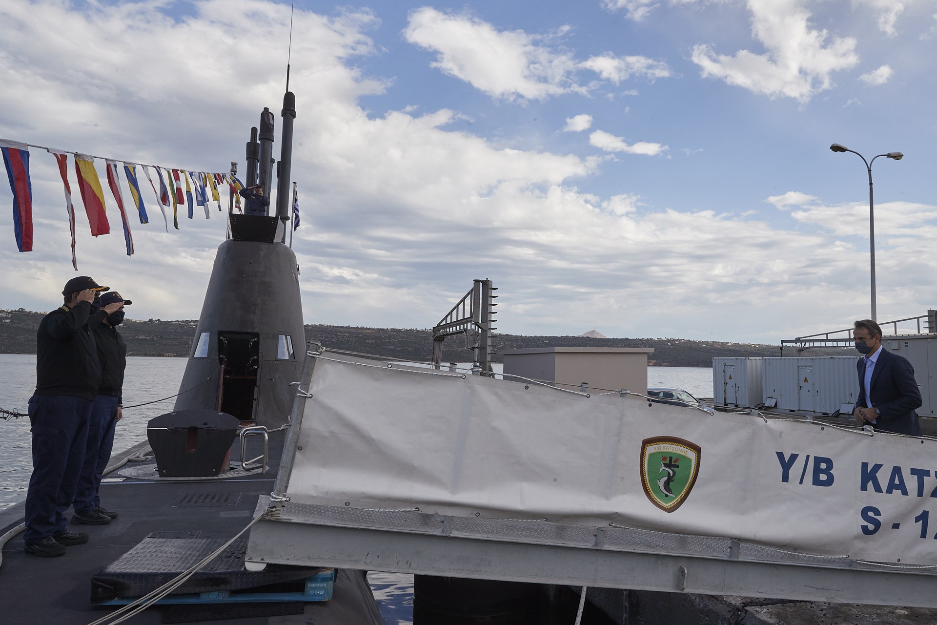 Στη Σούδα βρέθηκε ο Πρωθυπουργός Κυριάκος Μητσοτάκης και είχε την ευκαιρία να επιβιβαστεί στο υποβρύχιο “Κατσώνης”, όπου και συνομίλησε με το πλήρωμα. Κατά την άφιξή του στον Ναύσταθμο Κρήτης, ο Πρωθυπουργός πραγματοποίησε μια σύντομη στάση στο εκκλησάκι της Αγίας Βαρβάρας και στη συνέχεια επιθεώρησε άγημα αποδόσεως τιμών, ενώ αμέσως μετά εισήλθε στο εσωτερικό του υποβρυχίου προκειμένου να συνομιλήσει με το πλήρωμα και στο πρόσωπό τους να ευχαριστήσει όλο το προσωπικό των Ενόπλων Δυνάμεων για τις πολύτιμες υπηρεσίες που προσφέρει στην πατρίδα.