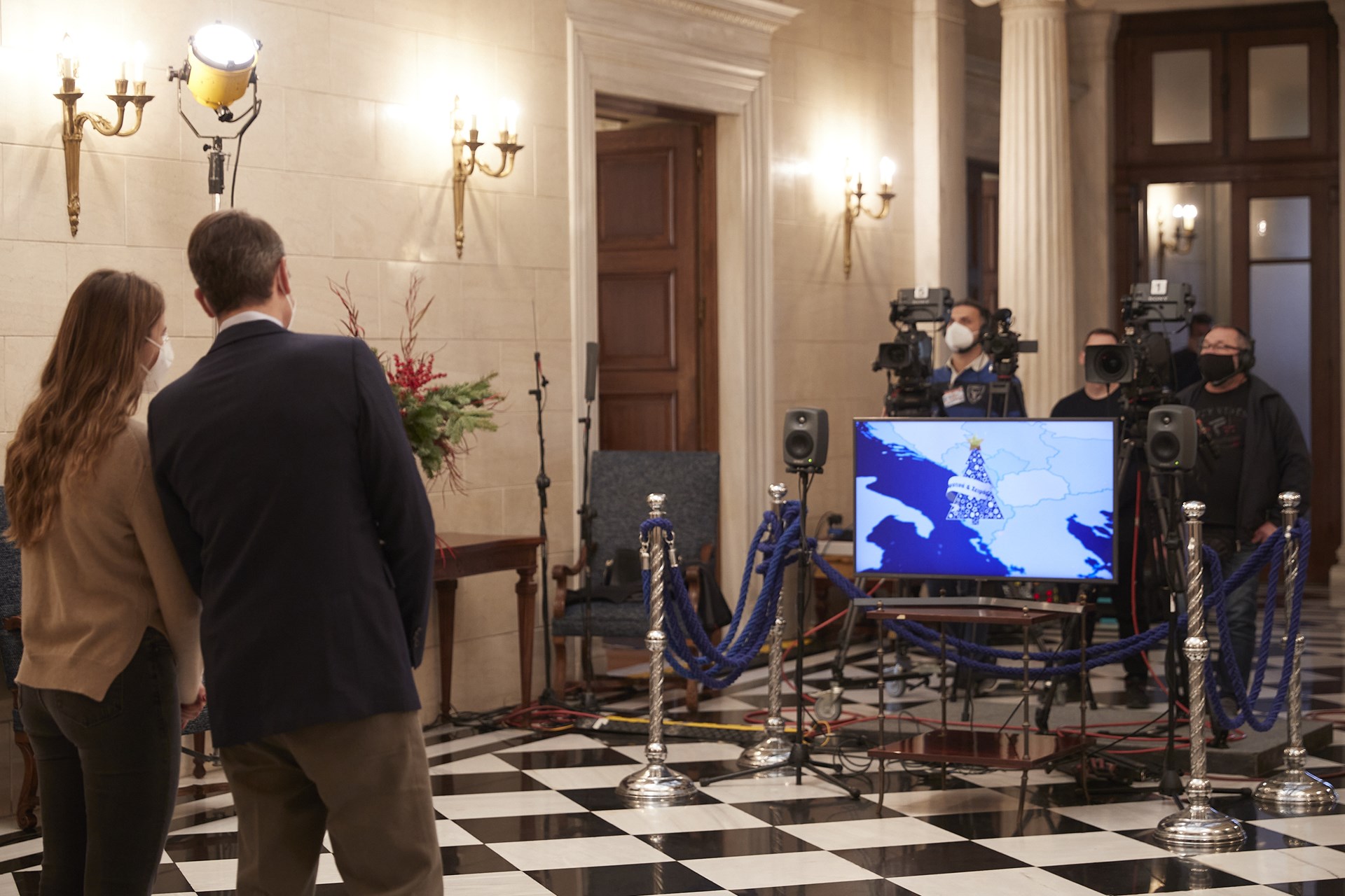 «Είναι διαφορετικά τα φετινά Χριστούγεννα, αλλά έχουμε μέσω της τεχνολογίας τη δυνατότητα όλη η Ελλάδα και ο Ελληνισμός της Αλβανίας να βρεθεί στο Μέγαρο Μαξίμου για να μας πείτε τα κάλαντα, να γιορτάσουμε έστω και με αυτόν τον διαφορετικό τρόπο τα Χριστούγεννα. Αυτή τη μεγάλη γιορτή της αγάπης και της προσφοράς. Θέλω από καρδιάς να σας πω Χρόνια Πολλά, να είστε γεροί, να προσέχετε -ειδικά στα μικρά παιδάκια του νηπιαγωγείου και του προνηπίου- να ξέρετε ότι κάνουμε ό,τι περνάει από το χέρι μας για να επιστρέψετε μία ώρα νωρίτερα στις τάξεις σας. Να έχουμε μία καλή χρονιά γεμάτη υγεία και αγάπη. Να είστε καλά την αγάπη μας και τις ευχές μας», σημείωσε ο Πρωθυπουργός χαιρετώντας εξ αποστάσεως και στέλνοντας τις ευχές του στα ακριτικά παιδιά του Έβρου.