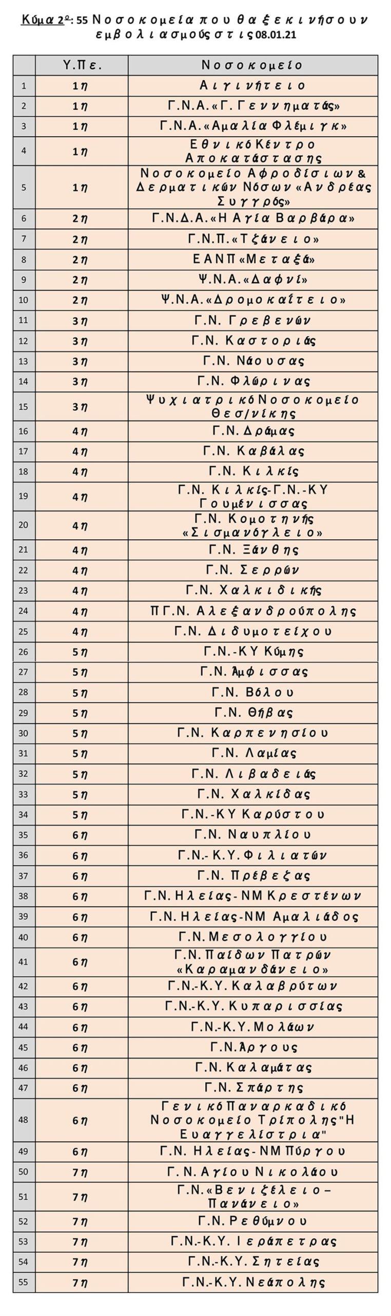 Στις 8/1/2021 θα προστεθούν επιπλέον 55 Νοσοκομεία και έως τις 12/1/2021 θα ολοκληρωθεί ο εφοδιασμός σε 19 Νοσοκομεία που βρίσκονται στη νησιωτική χώρα.