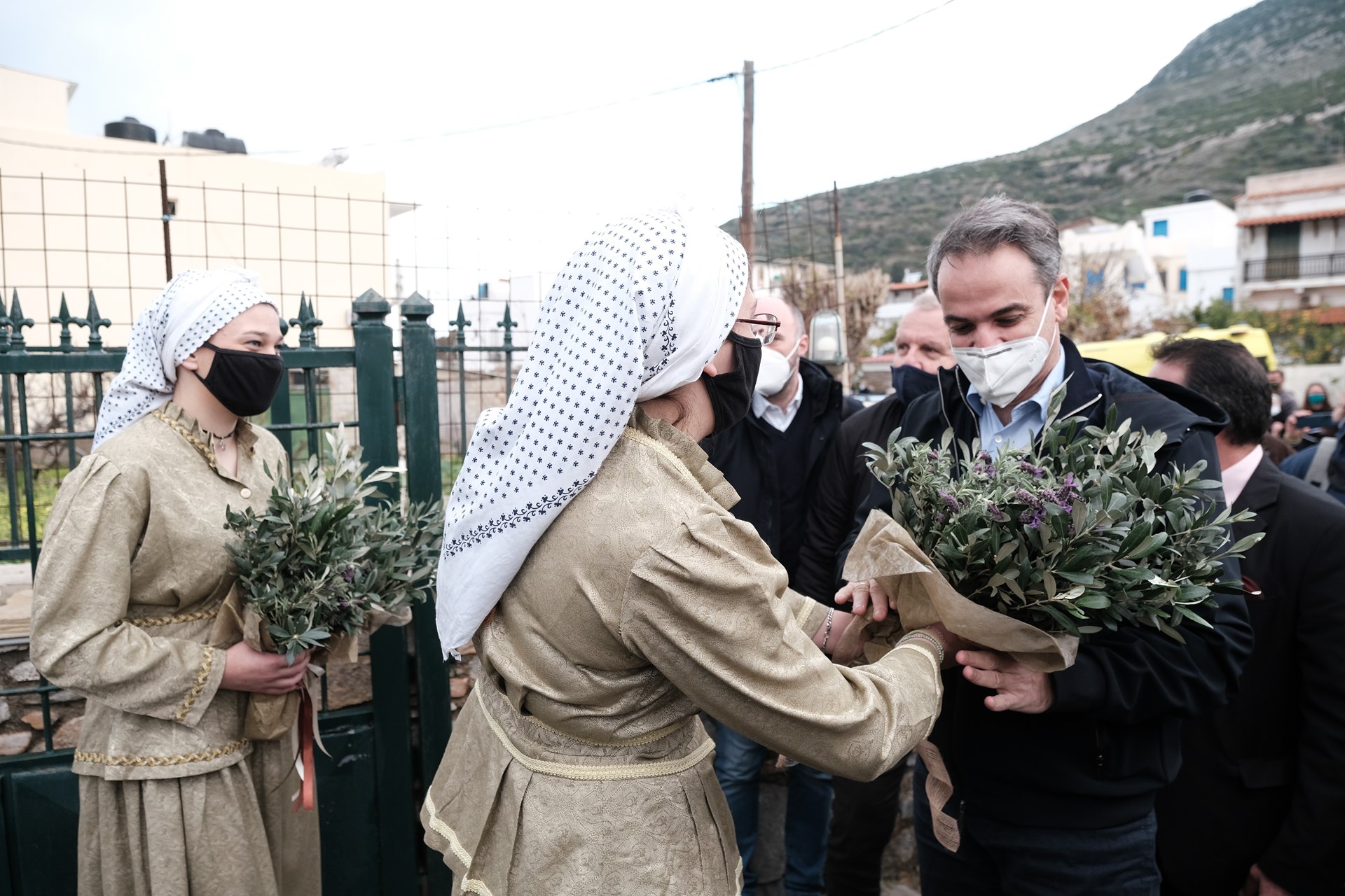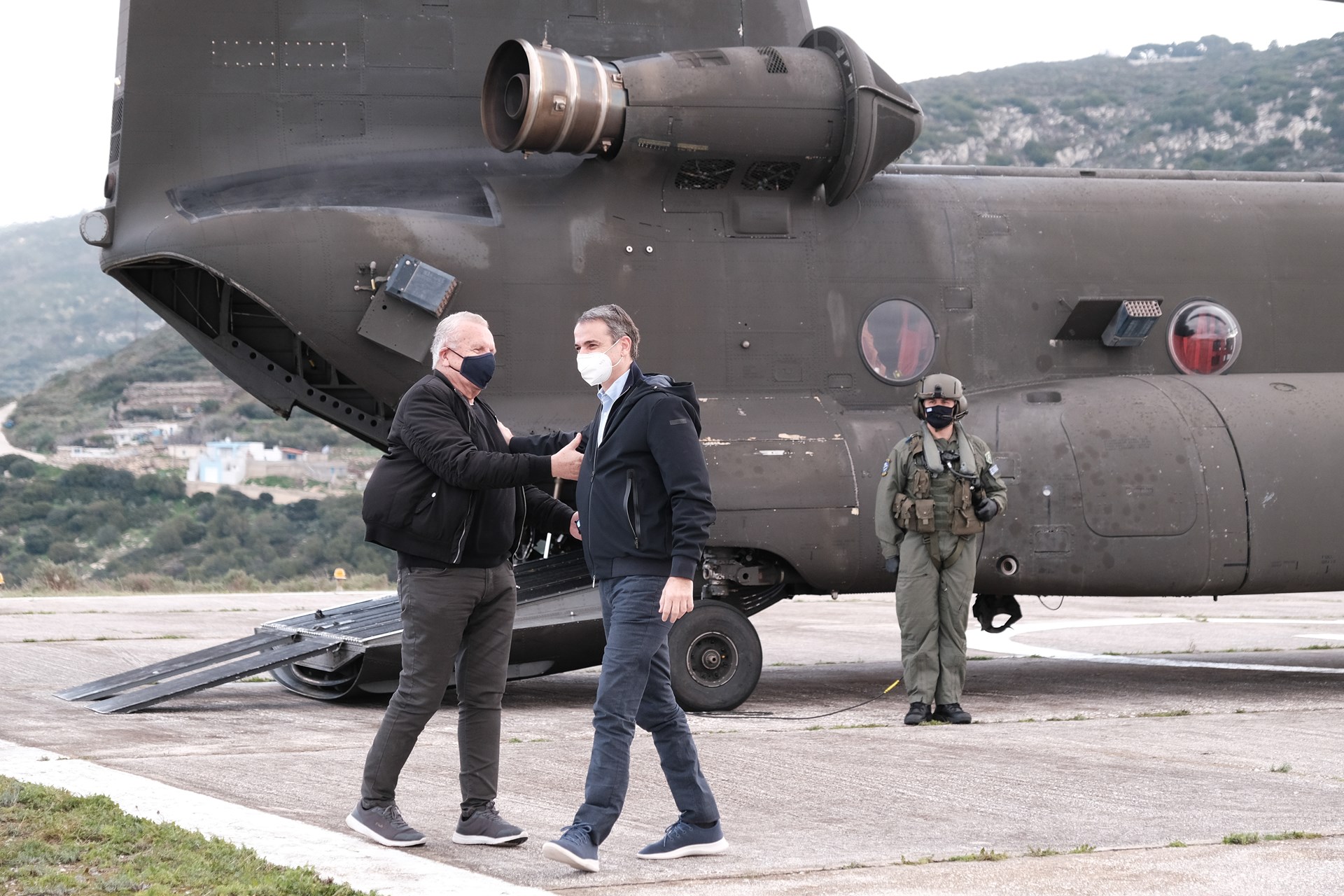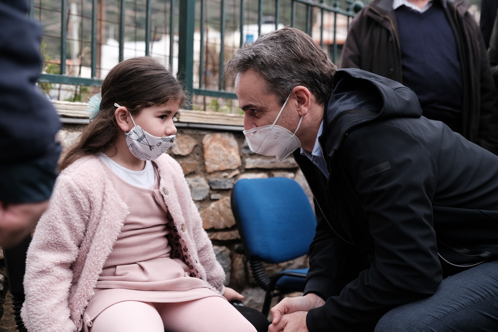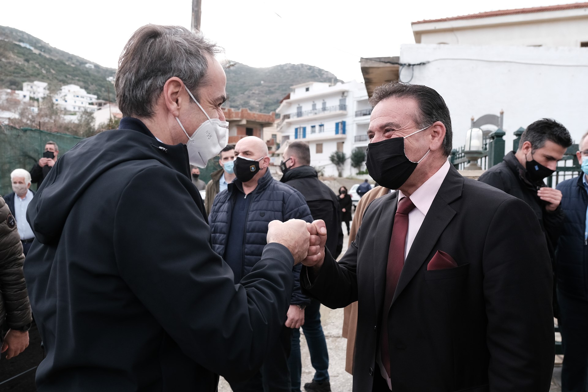 Σε συνομιλία του με τον δήμαρχο, Δημήτρη Καρύδη, ο Πρωθυπουργός ανέφερε: «Θέλουμε να είστε ασφαλείς, θέλουμε να είστε υγιείς και βέβαια, με την ευκαιρία, σε κάθε επίσκεψή μας είναι εδώ και οι αρμόδιοι υπουργοί, ο υπουργός Ναυτιλίας και Νησιωτικής Πολιτικής, ο αναπληρωτής υπουργός Εσωτερικών, ο γενικός γραμματέας Υποδομών, για να κάνουμε και μια επισκόπηση των εκκρεμοτήτων που υπάρχουν, των θεμάτων που μπορούμε να λύσουμε. Και -όπως ξέρεις- είμαστε αποτελεσματική κυβέρνηση, μας αρέσει να λύνουμε προβλήματα και να ερχόμαστε στη συνέχεια να βλέπουμε αυτά που έχουμε κάνει, να μιλάμε λιγότερο και να πράττουμε περισσότερο. Οπότε είναι και μια ευκαιρία να μας μιλήσετε για τα προβλήματα του νησιού».