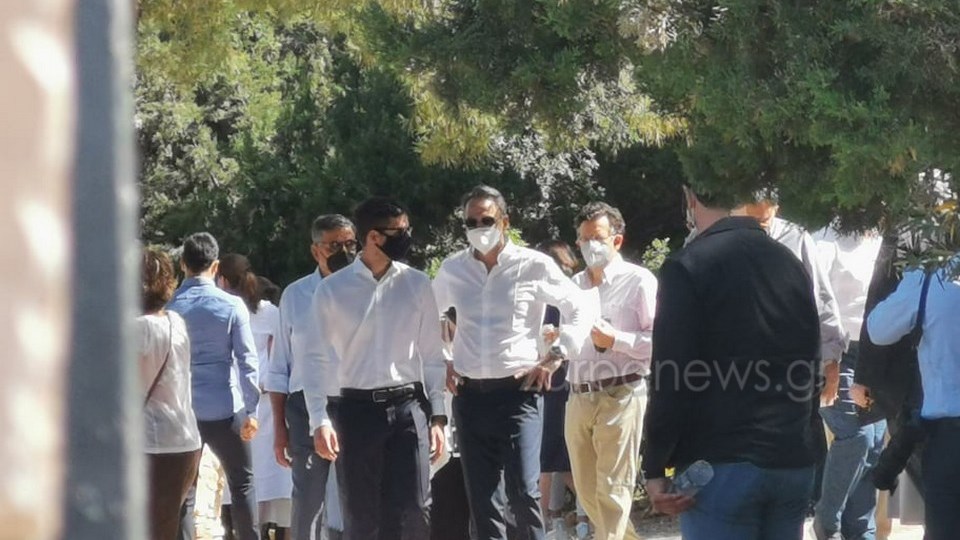 Παρόντες επίσης η σύζυγος του πρωθυπουργού Μαρέβα, ο γιος τους Κωνσταντίνος, η Ντόρα Μπακογιάννη με τον σύζυγό της Ισίδωρο Κούβελο καθώς και άλλα μέλη της οικογένειας. Η συγκίνηση και η θλίψη ήταν έκδηλες. Νωρίτερα η Ντόρα Μπακογιάννη έκανε ανάρτηση στα social media ανεβάζοντας μια φωτογραφία της με τον πατέρα της και έγραψε το εξής: