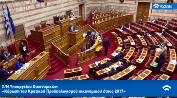 Για δεύτερη ημέρα συνεχίζεται στην Ολομέλεια της Βουλής η συζήτηση του Προϋπολογισμού του οικονομικού έτους 2017. Ωστόσο, η αίθουσα της Ολομέλειας είναι σχεδόν άδεια και παρόντες είναι ουσιαστικά μόνο οι βουλευτές που έχουν γραφτεί στον κατάλογο των ομιλητών και είναι προγραμματισμένο να μιλήσουν.