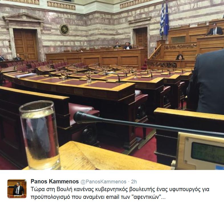 Άδεια η βουλή-Δείτε τη φωτογραφία που ανέβασε ο Καμμένος