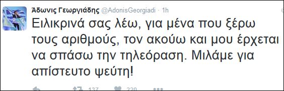 Επίθεση κατά του Αλέξη Τσίπρα εξαπέλυσε ο Άδωνις Γεωργιάδης μέσω Twitter σχολιάζοντας την ομιλία του Πρωθυπουργού στη Κοινοβουλευτική Ομάδα του ΣΥΡΙΖΑ.