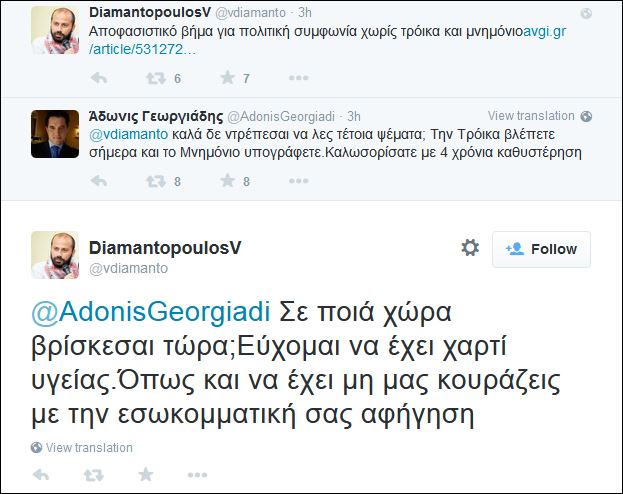Σκληρή κόντρα ξέσπασε στο Twitter ανάμεσα στον Άδωνι Γεωργιάδη και τον Βαγγέλη Διαμαντόπουλο με αφορμή τις διαπραγματεύσεις της κυβέρνησης με τους εκπροσώπους των δανειστών.