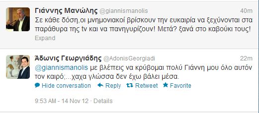 Για να δείτε τους προηγούμενους διαλόγους Γεωργιάδη-Μανώλη πατήστε εδώ