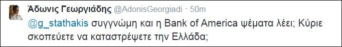 Ο κ. Γεωργιάδης του απάντησε: «συγγνώμη και η Bank of America ψέματα λέει; Κύριε σκοπεύετε να καταστρέψετε την Ελλάδα;».