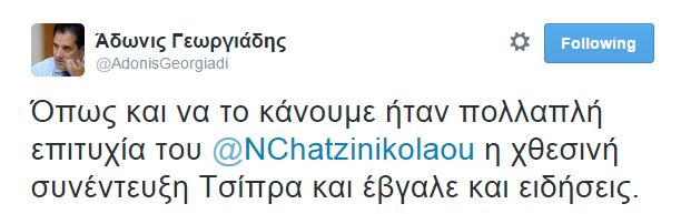 Το tweet του ‘Αδωνι Γεωργιάδη