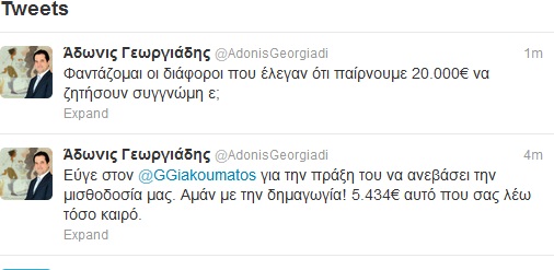 Το εγκώμιο του Γεράσιμου Γιακουμάτου για την κίνησή του να δημοσιοποιήσει στο Twitter την μισθοδοσία του έπλεξε ο Άδωνις Γεωργιάδης.Δείτε τι έγραψε πριν από λίγο ο βουλευτής της Νέας Δημοκρατίας: