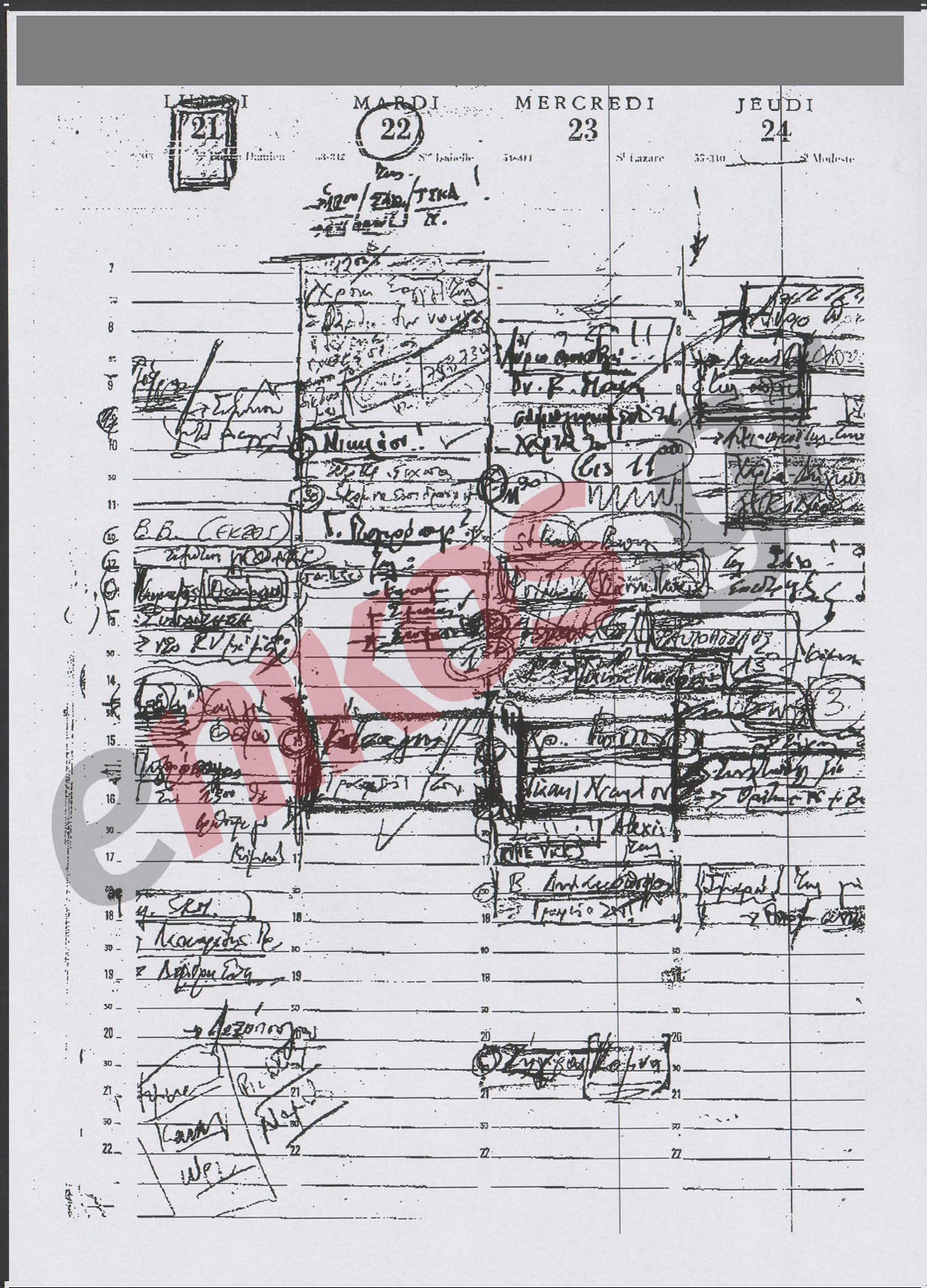 Μέσα από το ημερολόγιο, προκύπτει ότι ο Άκης Τσοχατζόπουλος προσπάθησε ανεπιτυχώς να προσεγγίσει και δικαστικούς λειτουργούς. Δείτε το βίντεο από το ΜΕGA Διευκρινίζεται ότι στις σελίδες του ημερολογίου έχουν καλυφθεί τα σημεία όπου αναγράφονται προσωπικά δεδομένα και αριθμοί τηλεφώνων.