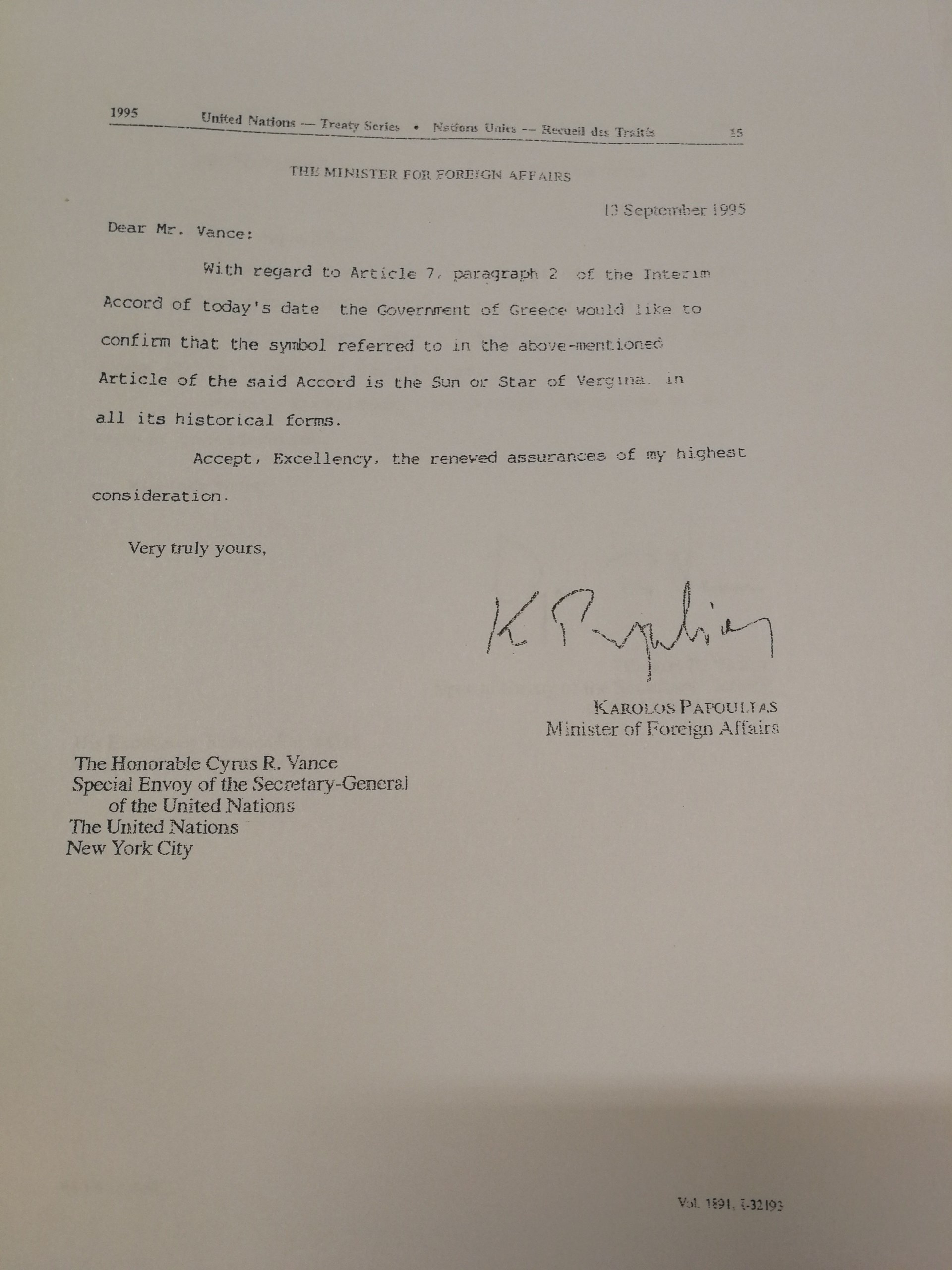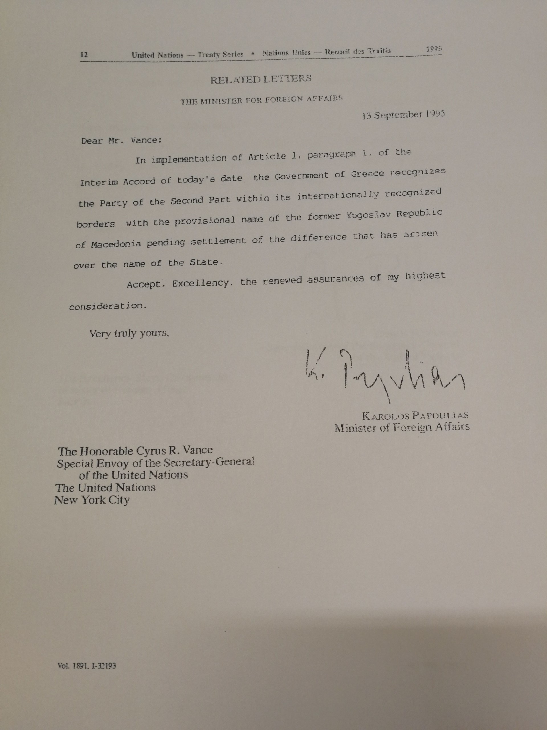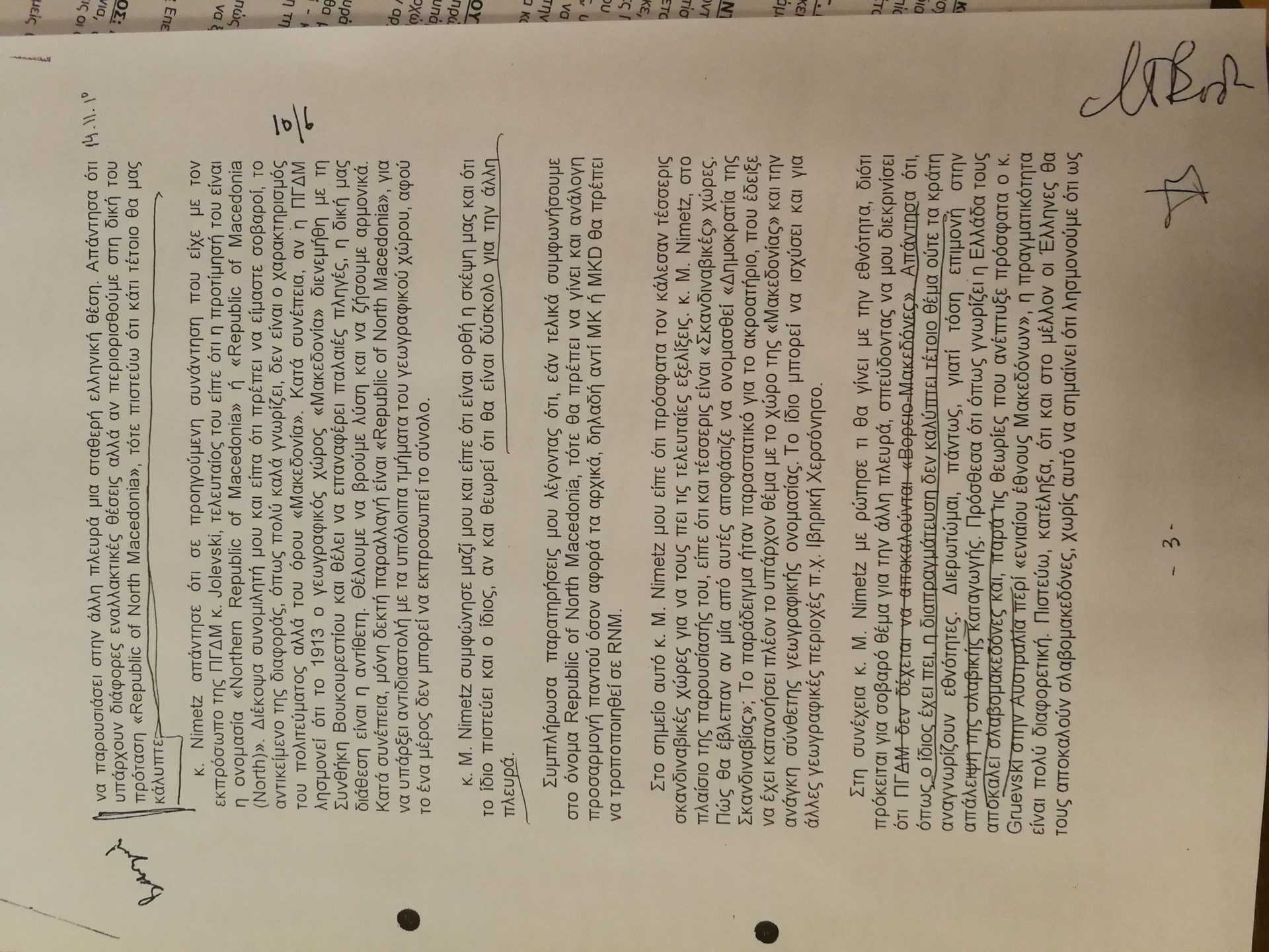 Σύμφωνα με τα στοιχεία αυτά, όπως είπε, αποδεικνύεται ότι κατά τη διαπραγμάτευση της ΝΔ και του ΠΑΣΟΚ η έννοια της erga omnes ονομασίας περιοριζόταν αποκλειστικά σε διεθνή χρήση, δηλαδή οι γείτονες θα λέγονταν στο εσωτερικό τους «Μακεδόνες».