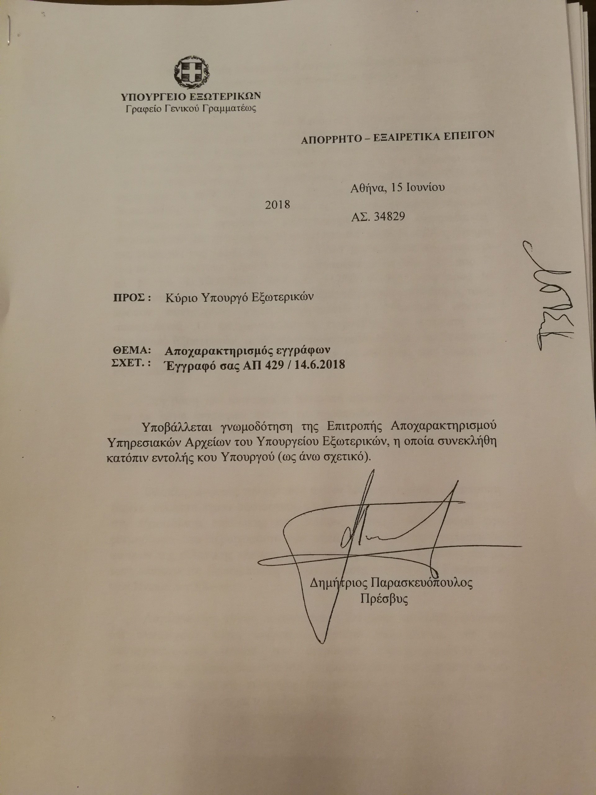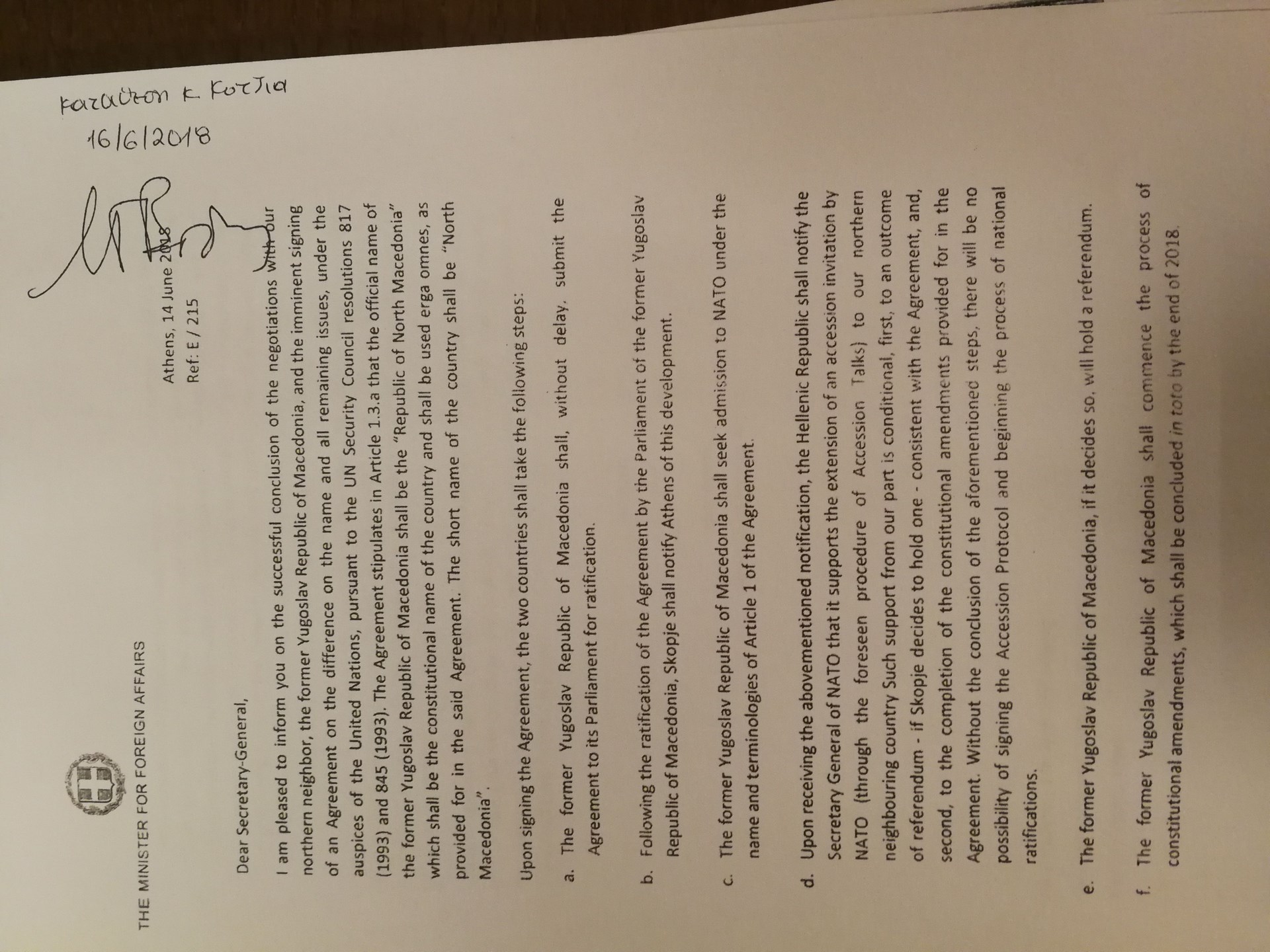 Αυτά είναι τα έγγραφα για το Σκοπιανό που κατέθεσε ο Κοτζιάς στη Βουλή