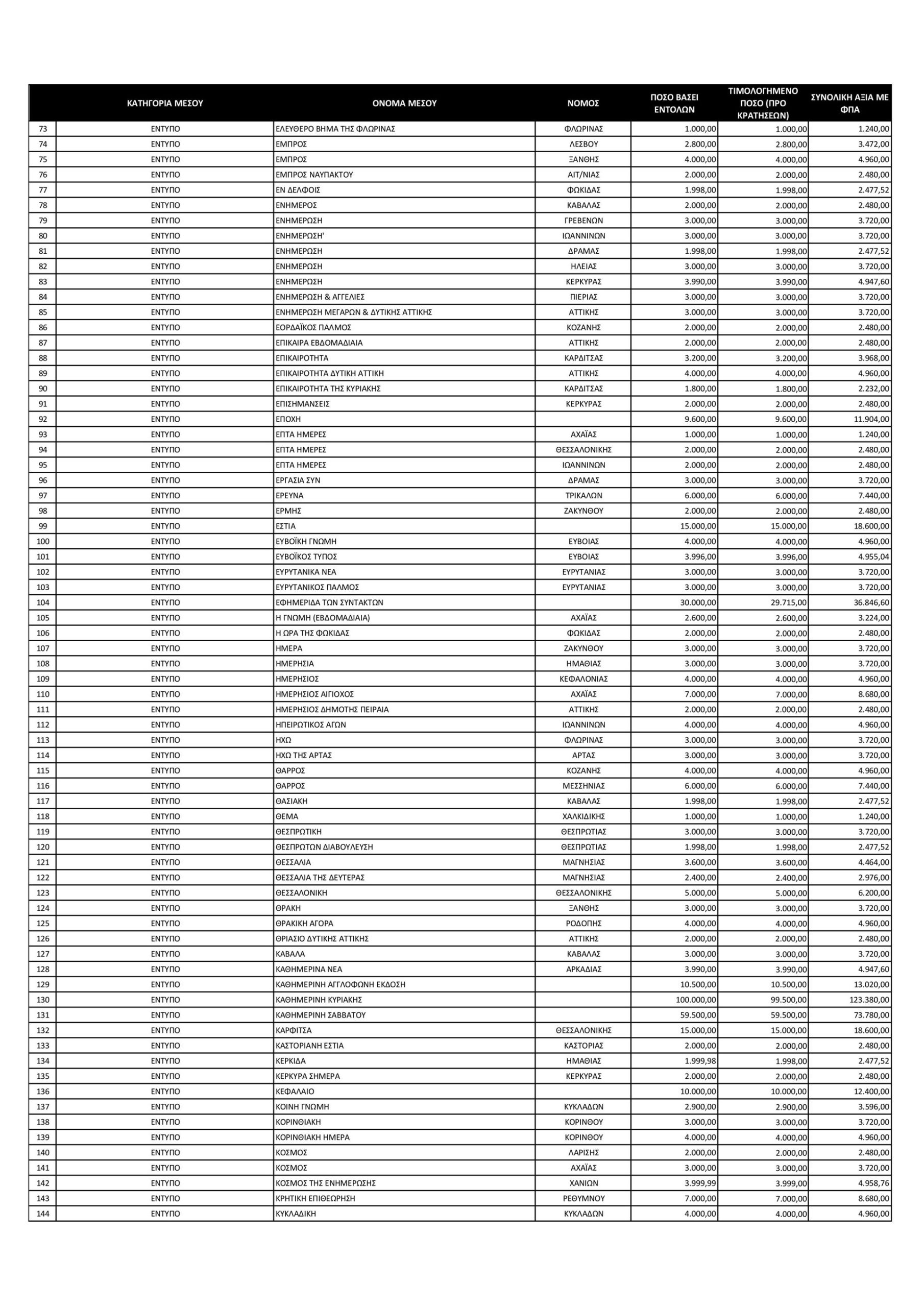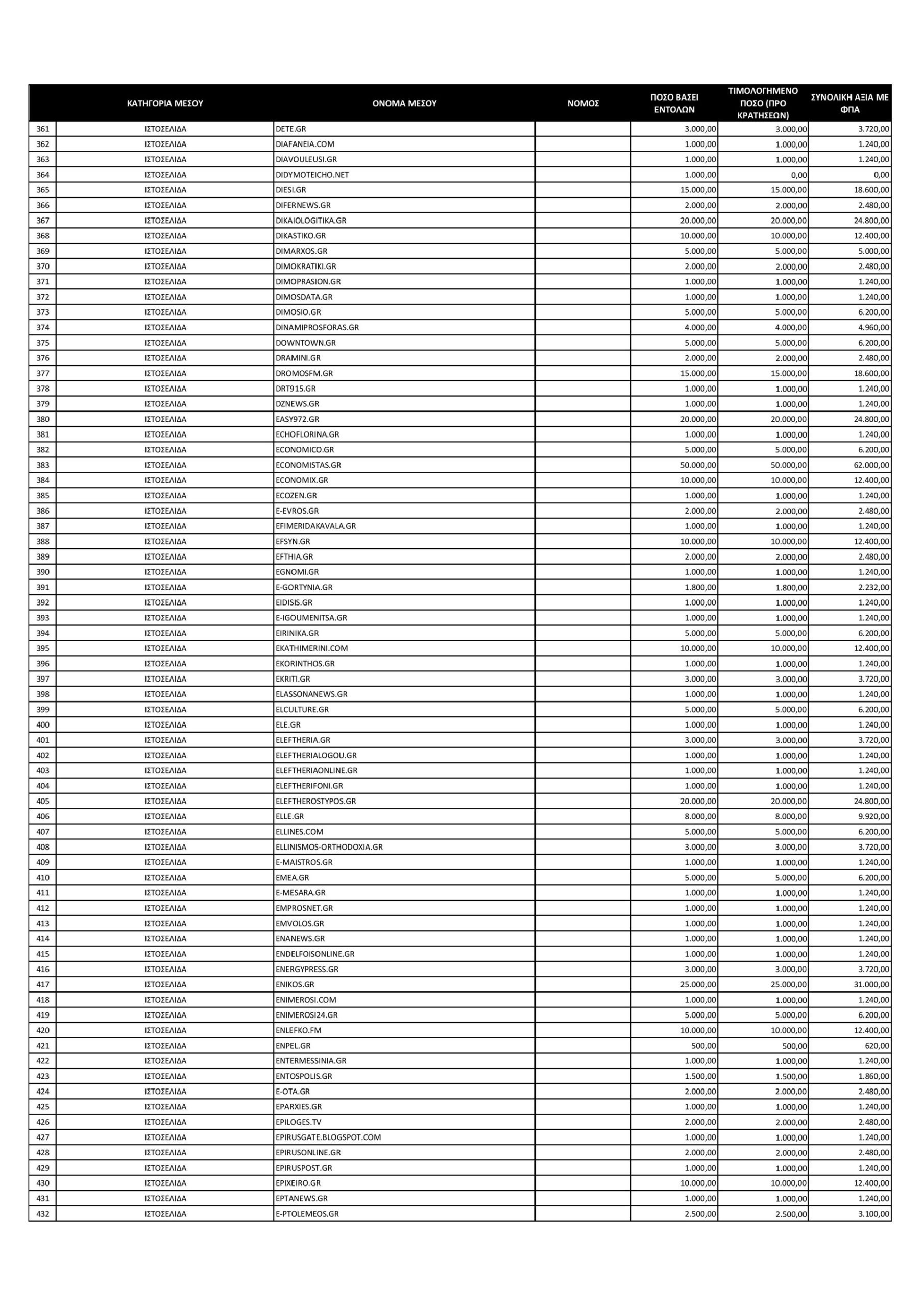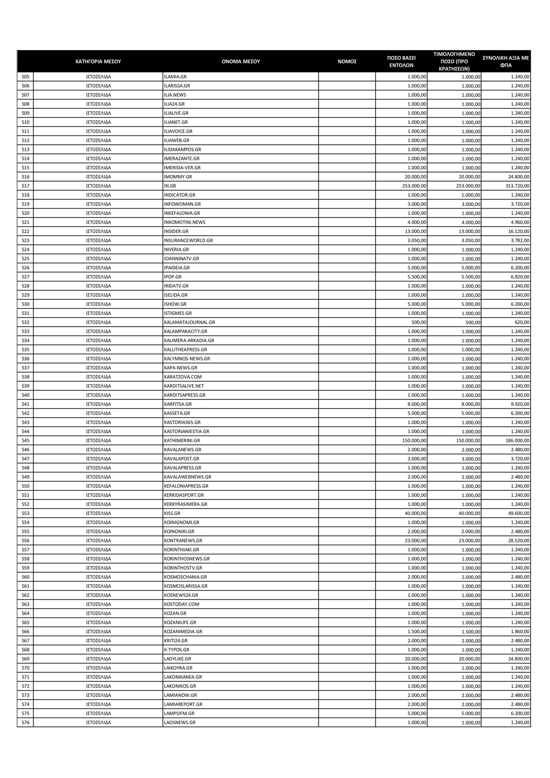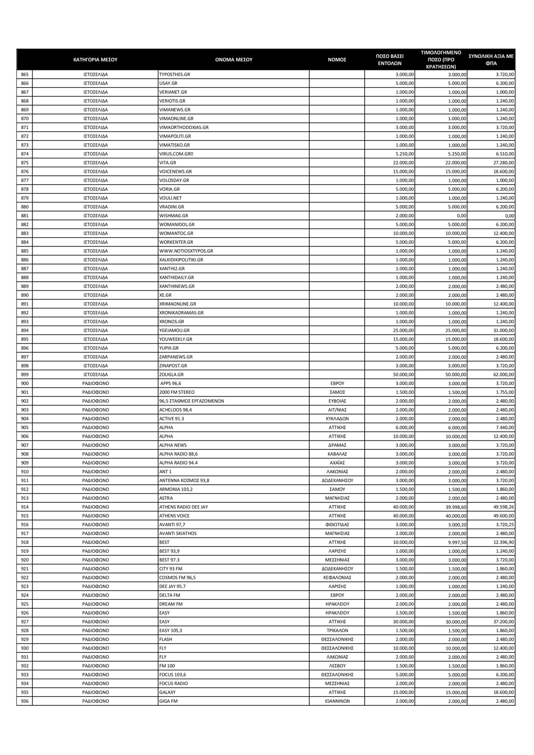 Δόθηκε στη δημοσιότητα το μεσημέρι της Δευτέρας από τον κυβερνητικό εκπρόσωπο Στέλιο Πέτσα ολόκληρη η λίστα με τα χρήματα που δόθηκαν σε Μέσα Μαζικής Ενημέρωσης για την καμπάνια ενημέρωσης για τον κορονοϊό. Στο τέλος της 18σελιδης λίστας αναφέρεται ότι τα έξι μέσα που περιλαμβάνονται στον κατάλογο με μηδενικό τιμολογημένο ποσό φιλοξένησαν κανονικά την εκστρατεία επικοινωνίας και ενημέρωσης για τον Covid-19, αλλά δεν έχουν καμία αξίωση οικονομική ή άλλου είδους, που να απορρέει ή να σχετίζεται με τη συμμετοχή τους σε αυτήν, καθώς δεν απέστειλαν τιμολόγιο. Στο τέλος της λίστας, αναφέρονται τα επιπλέον μέσα προβολής που αξιοποιήθηκαν, όπως η υπαίθρια διαφήμιση και οι συνδεδεμένες με την υλοποίηση της εκστρατείας υπηρεσίες.