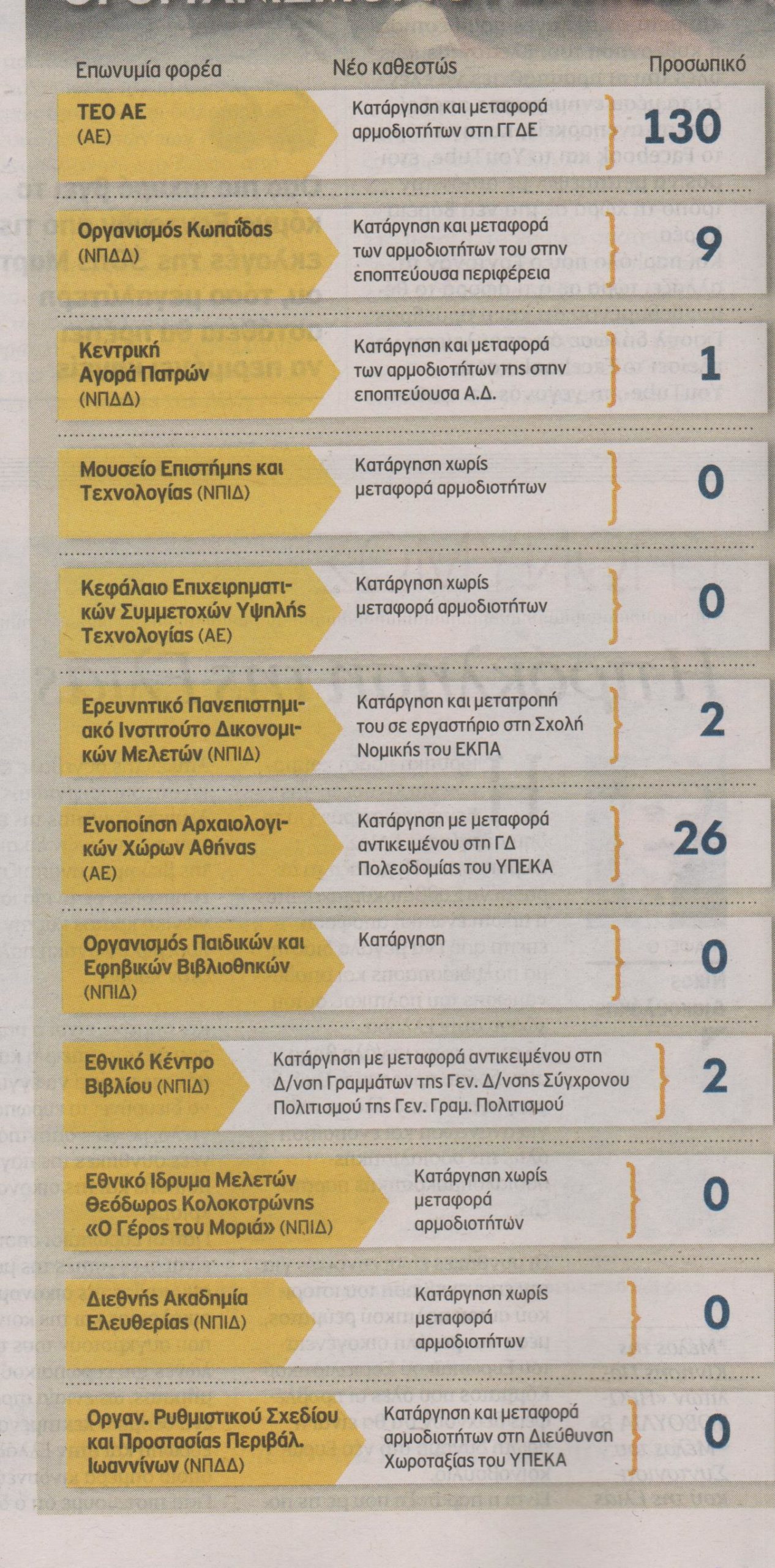 Αξίζει να σημειωθεί ότι η μάχη για τη διατήρηση φορέων έγινε για οργανισμούς – σφραγίδες, που δεν έχουν καμία δραστηριότητα τα τελευταία χρόνια και λειτουργούν μόνο με διοικητικά συμβούλια και χωρίς προσωπικό.