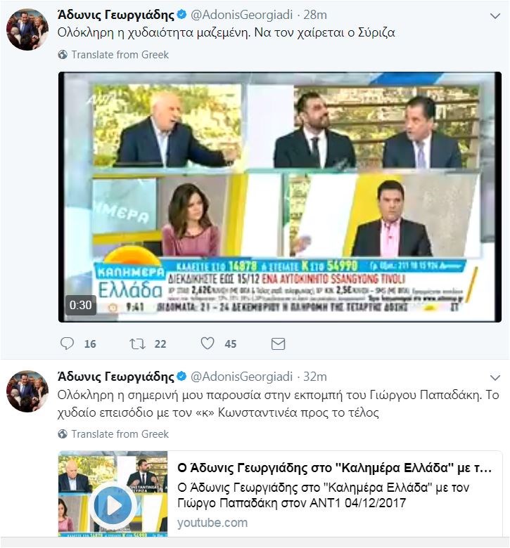 Λίγα λεπτά αργότερα, ο κ. Γεωργιάδης, έδωσε συνέχεια στο θέμα, με δύο αναρτήσεις του στο Twitter.
