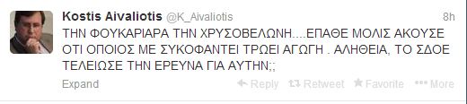 «Την φουκαριάρα την Χρυσοβελώνη… Έπαθε μόλις άκουσε ότι όποιος με συκοφαντεί τρώει αγωγή. Αλήθεια, το ΣΔΟΕ τελείωσε την έρευνα για αυτήν;;» αναφέρει στο μήνυμα του το στέλεχος του ΛΑΟΣ.